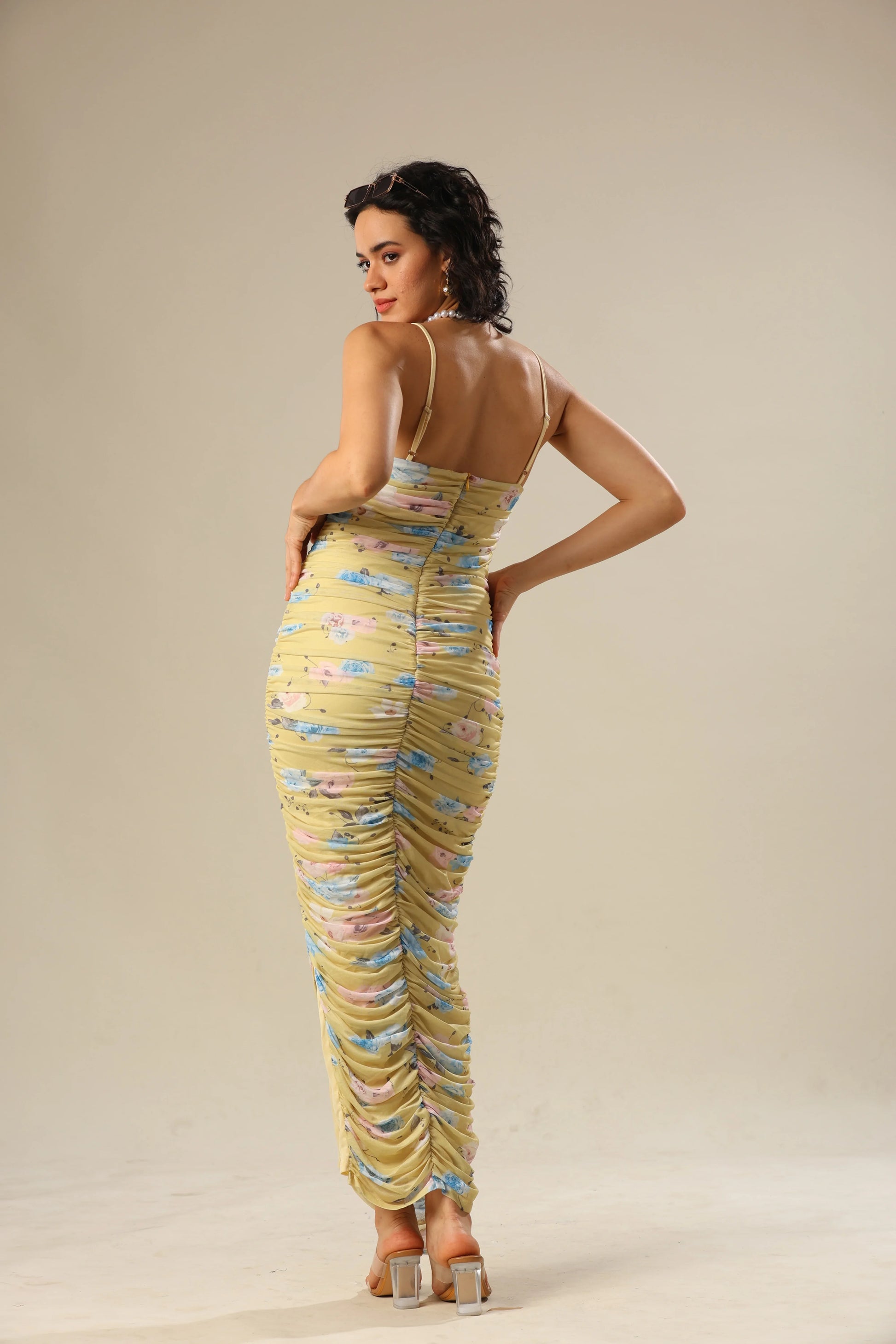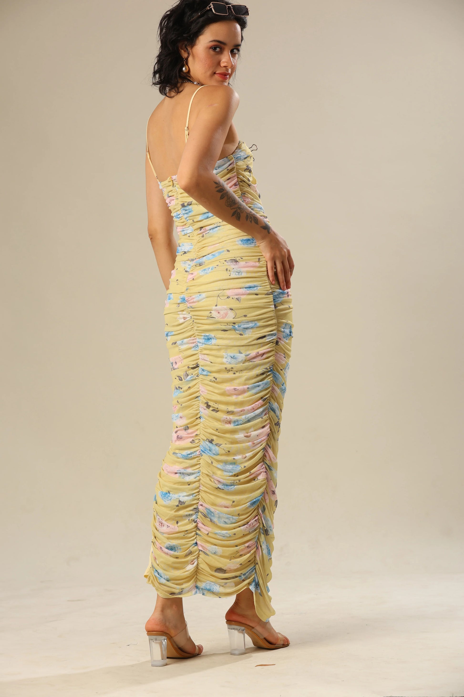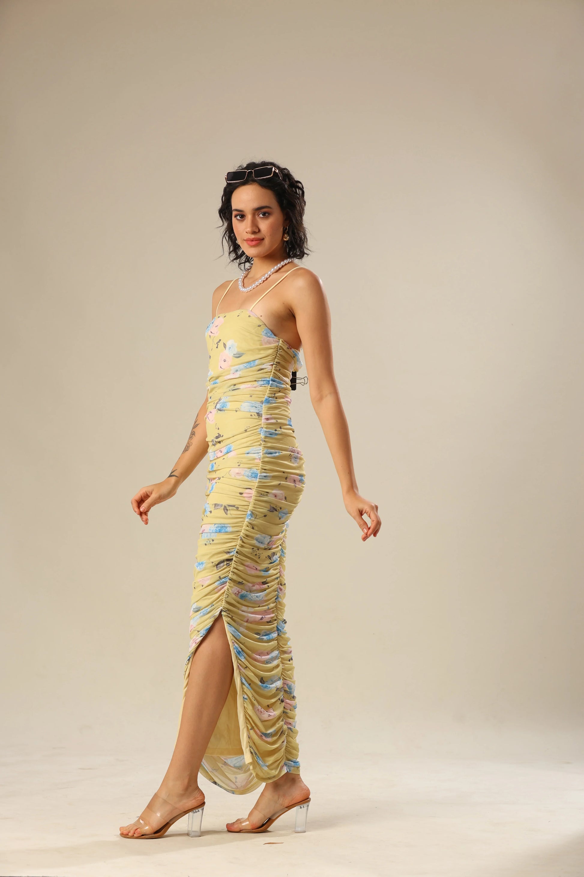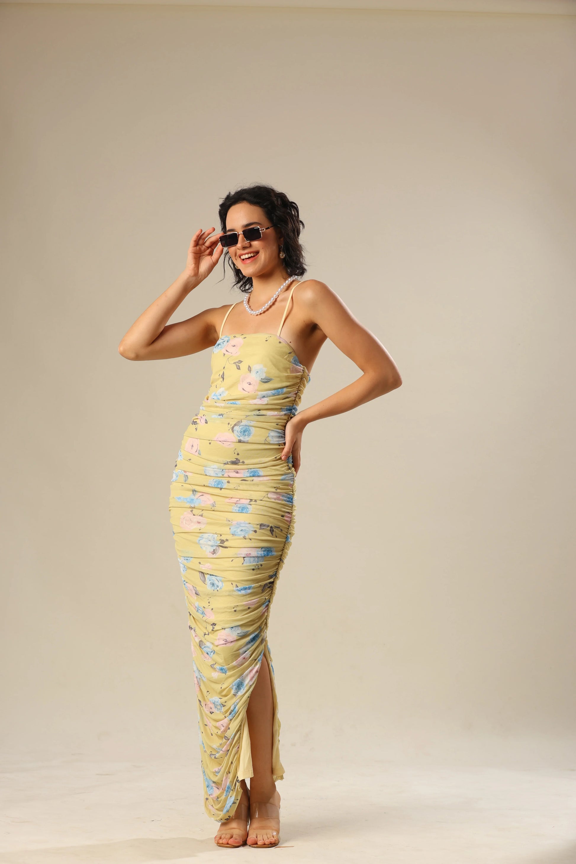 Make a bold statement with this stunning yellow maxi dress, featuring an ammonia mesh fabric for a lightweight, breathable feel. The vibrant digital print adds a contemporary touch, with striking patterns that catch the eye. Designed with a flattering bottom split and a chic halter neck, this wrap dress exudes effortless elegance and movement. Perfect for summer soirées, beachside gatherings, or evening events, this dress combines modern design with a flattering silhouette, ensuring you stand out in style and comfort