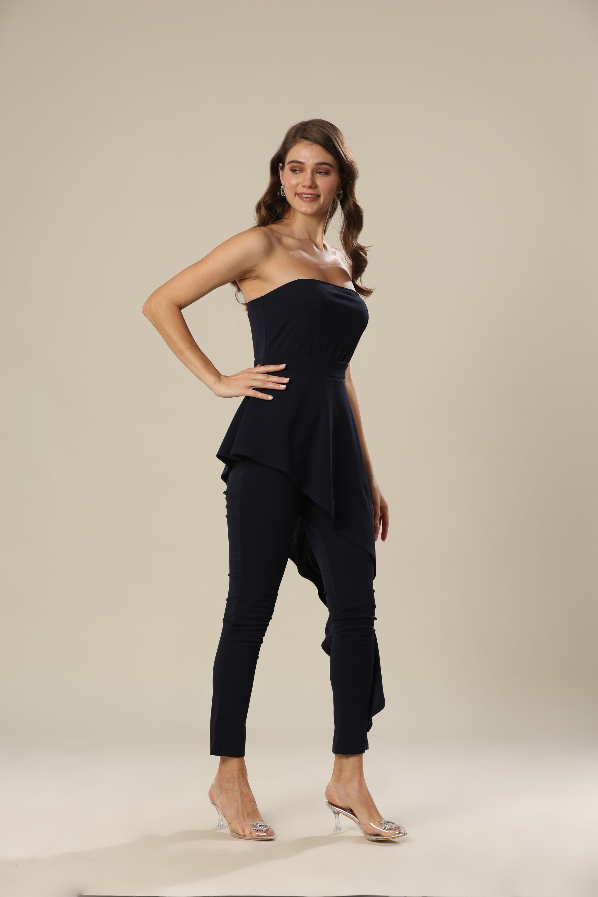 Machine wash. High quality compact fabric. With asymmetric skirt detail. With zipper closure on the back Long and tight pants.