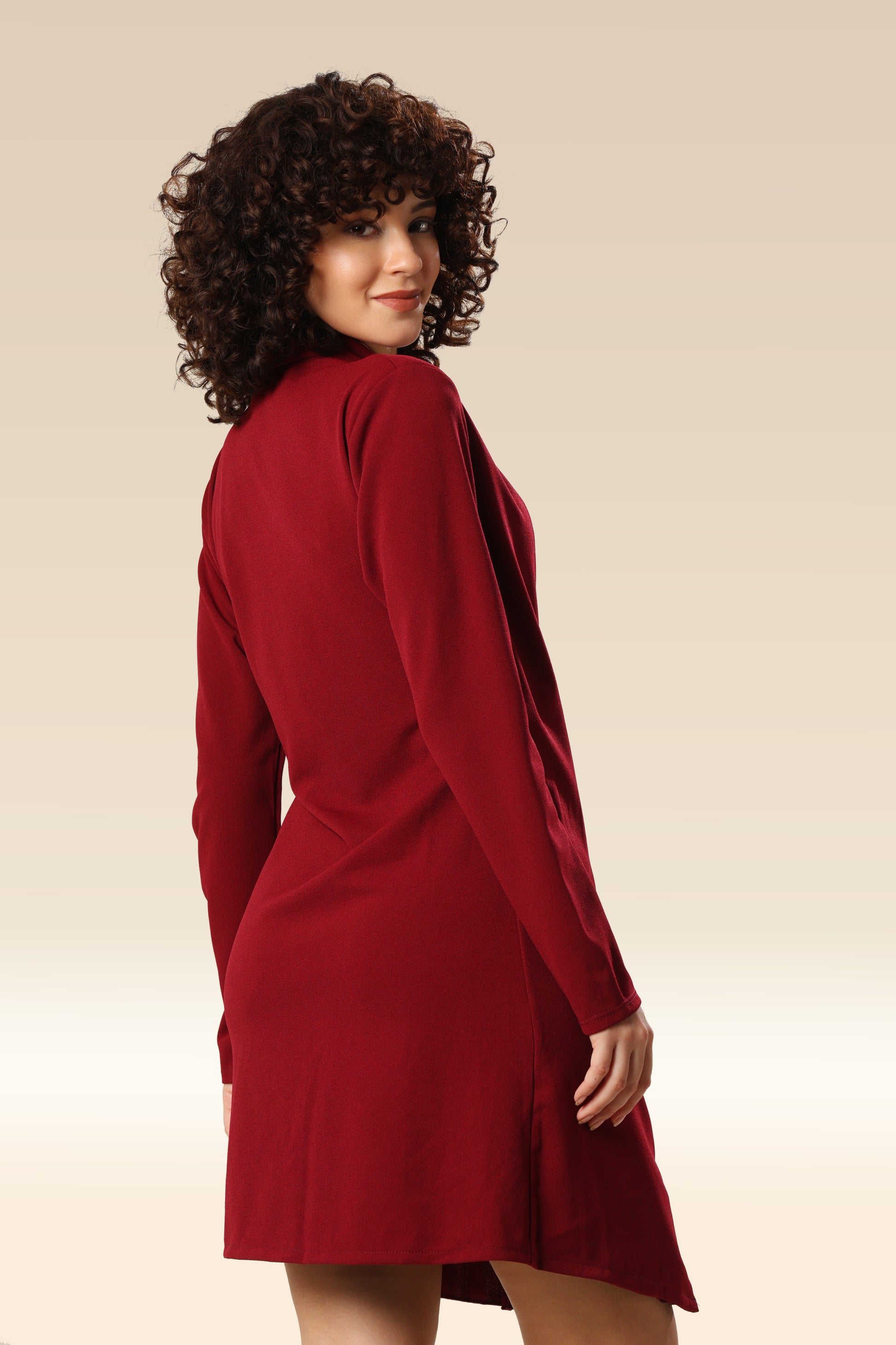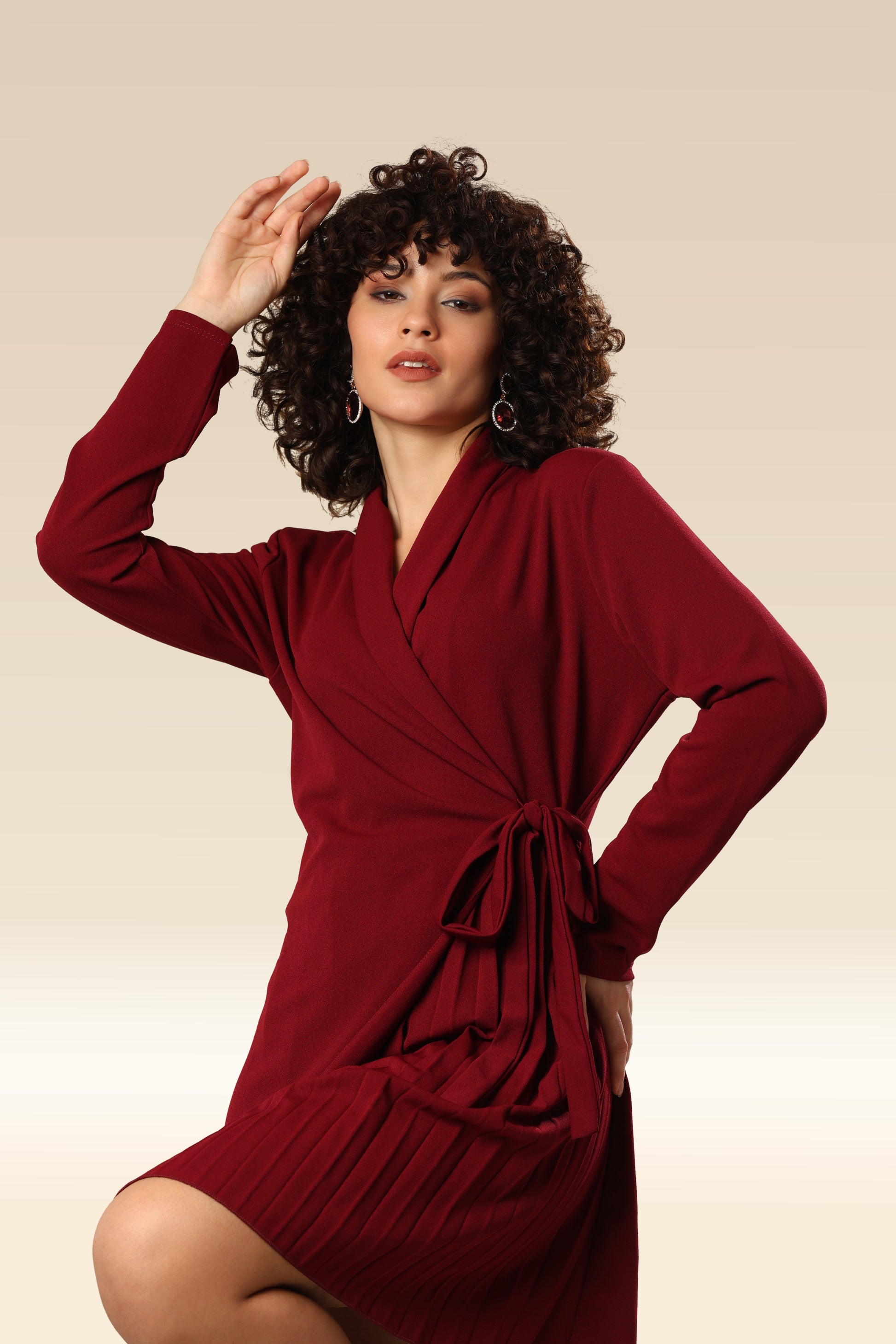 Bordeaux Bliss Wrap & Pleats Elegance Dress