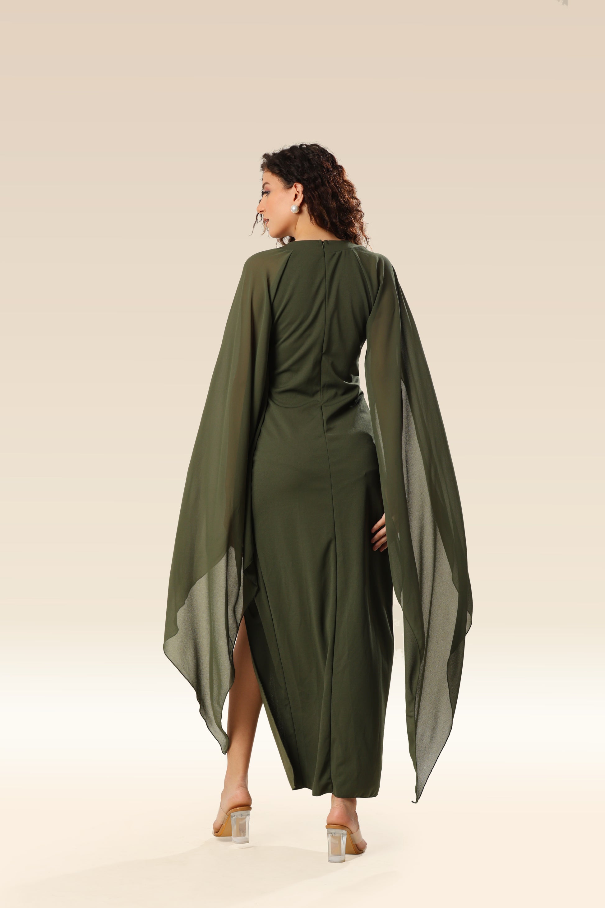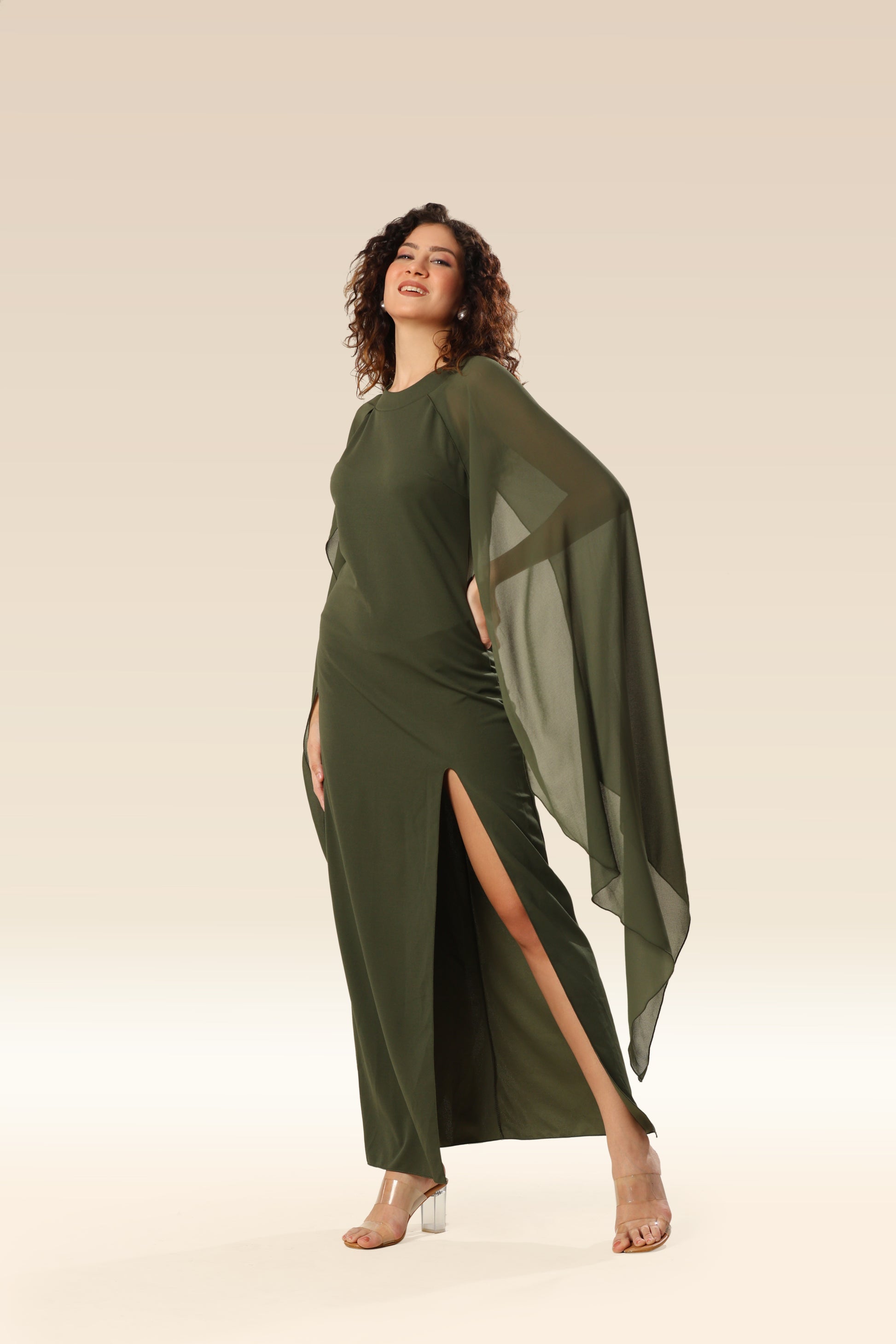 Machine washable. A long fashionable dress made of very comfortable and soft fabric. Round collar. Transparent fabric sewn to the sides as a fashion accessory. Cutout at the side. Hidden zipper on the back. The product is entirely manufactured in Italy.