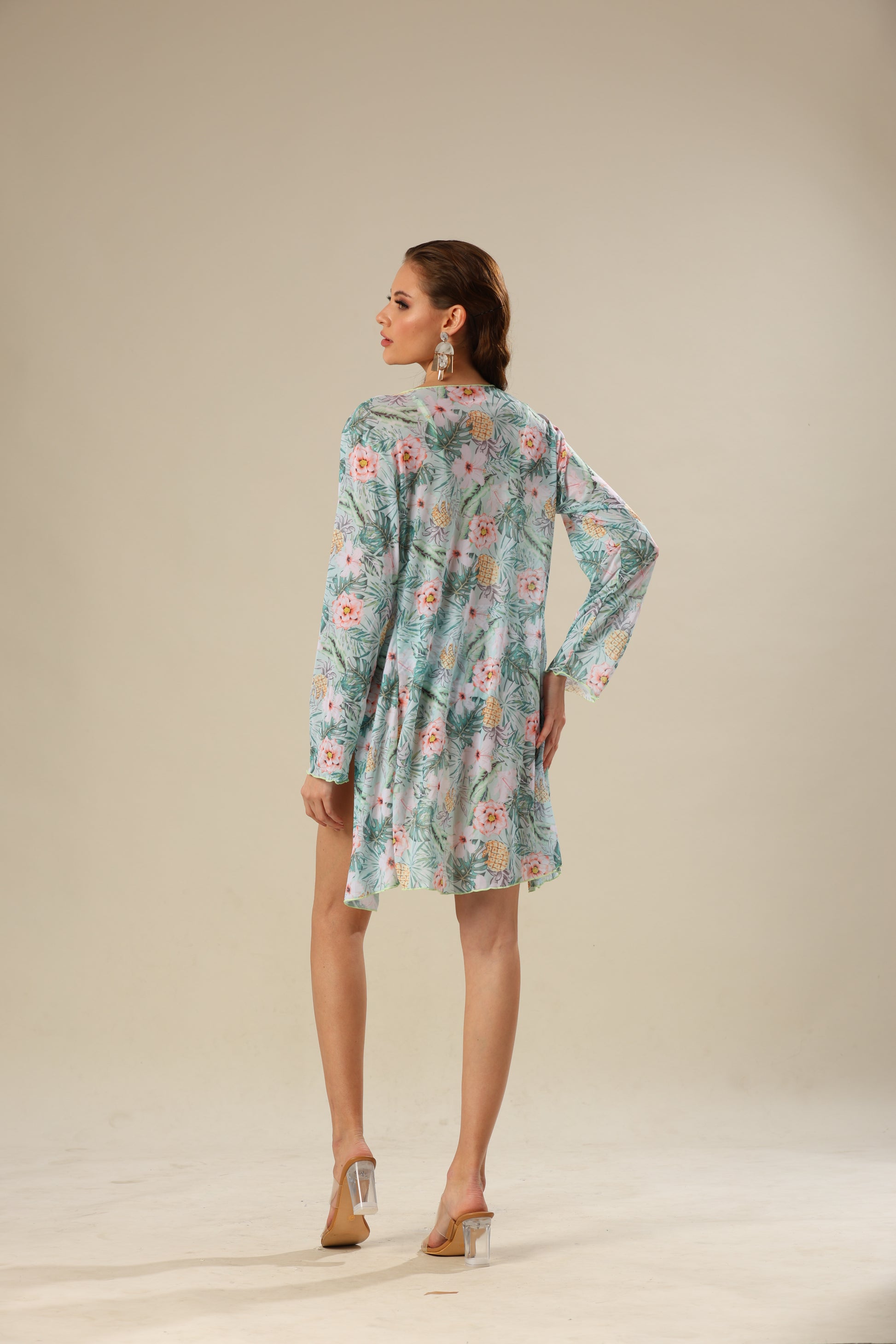 New designer bathing suits green leaf print bikini swimsuit long sleeves cover-up 3 pieces swimwear.