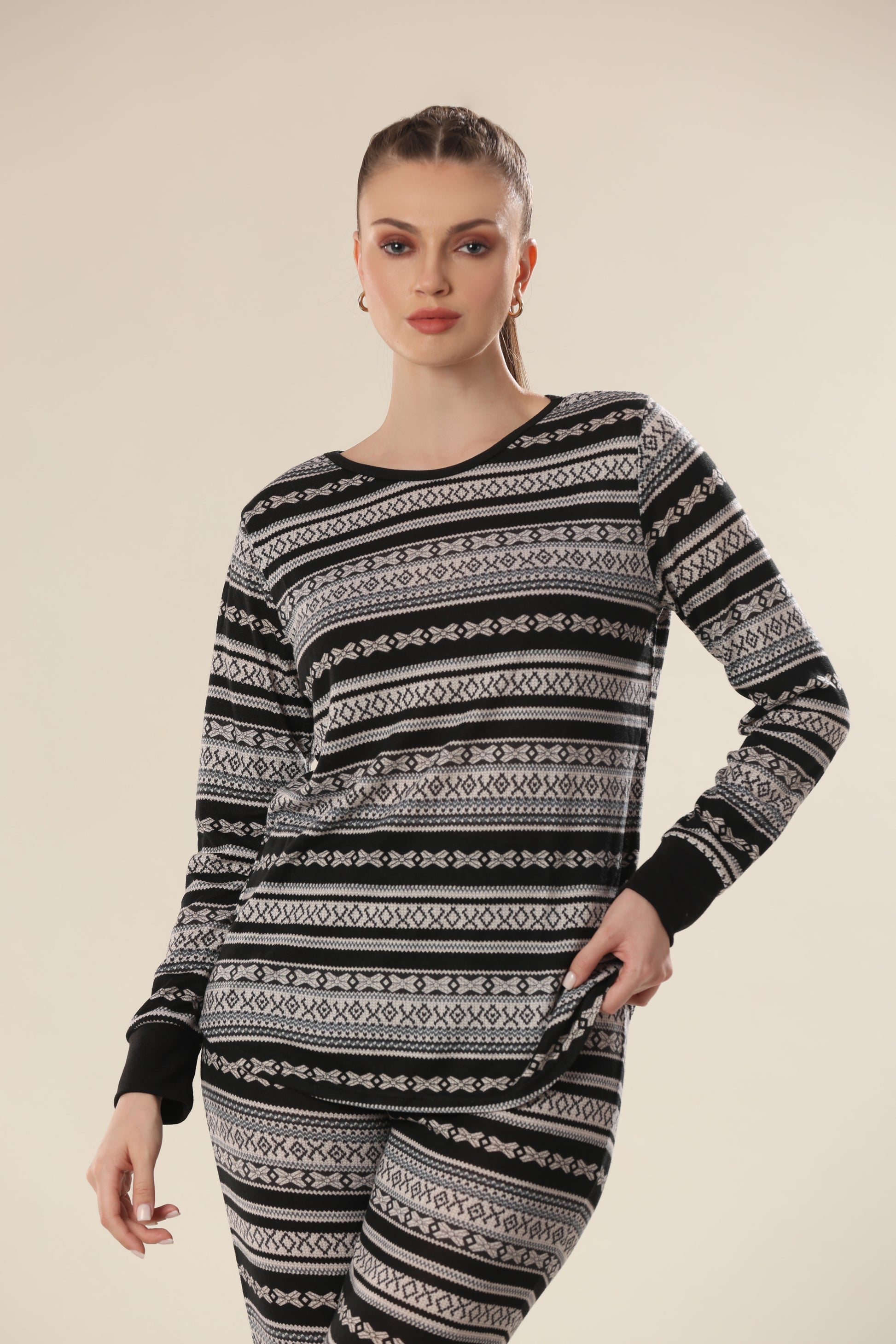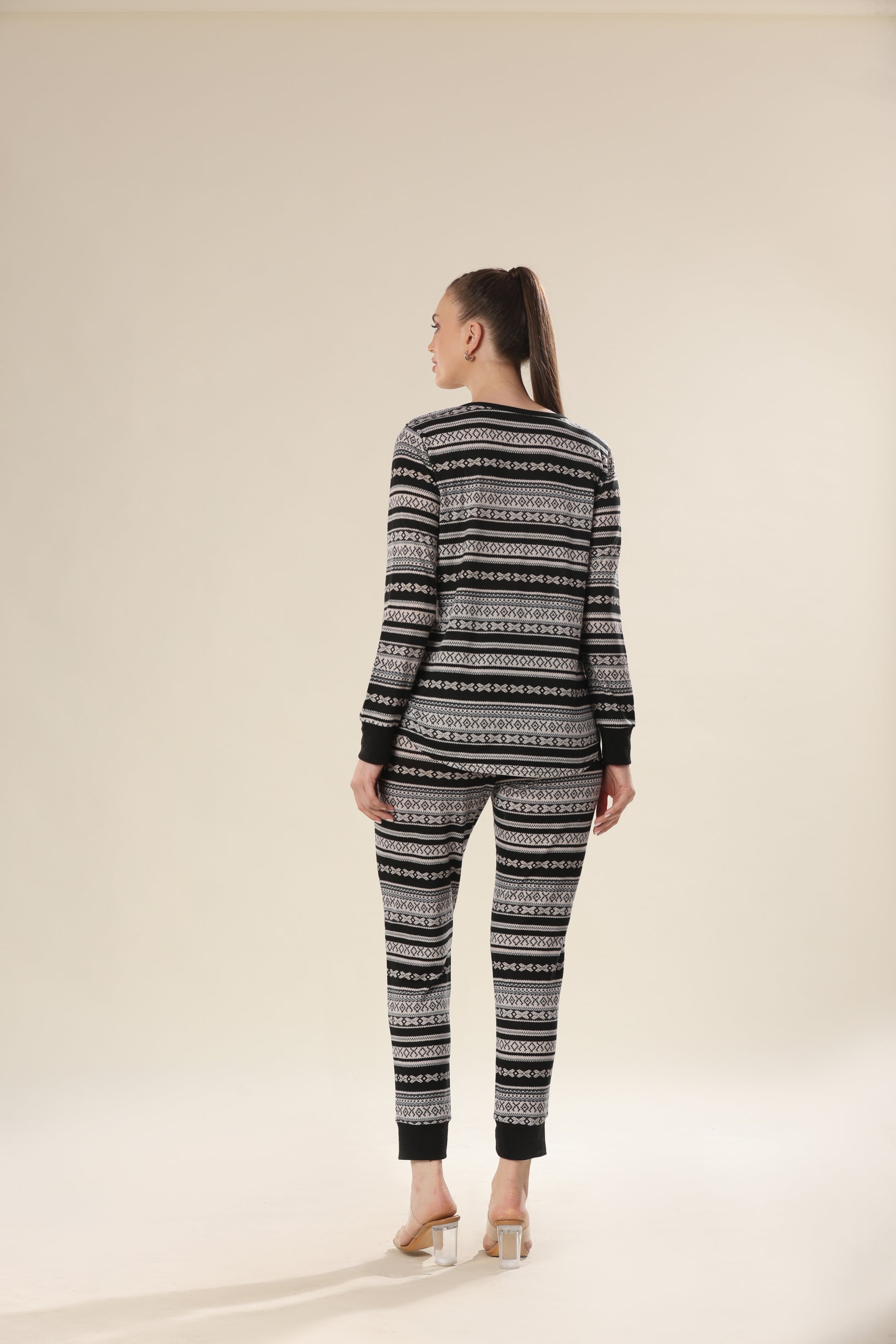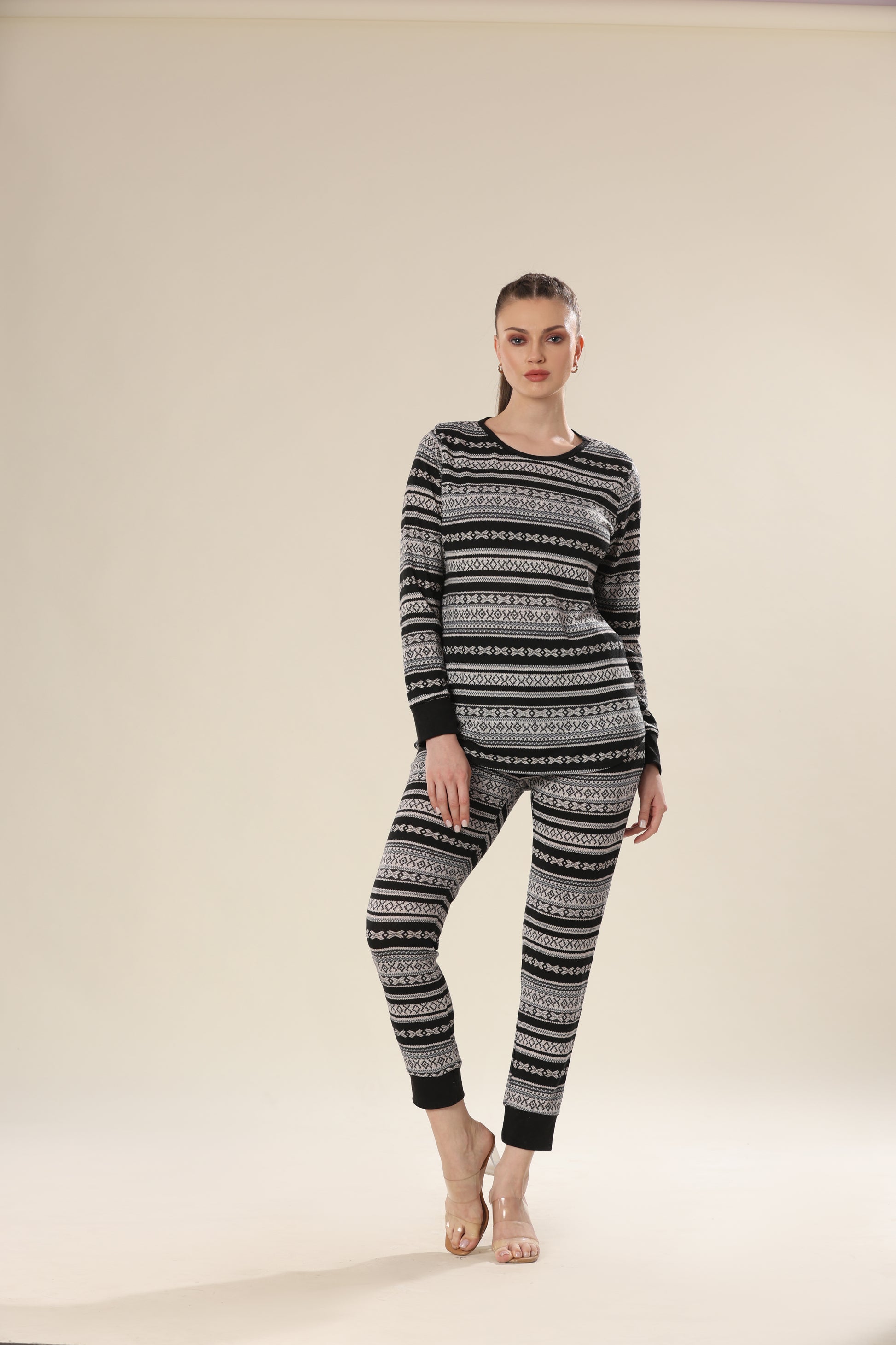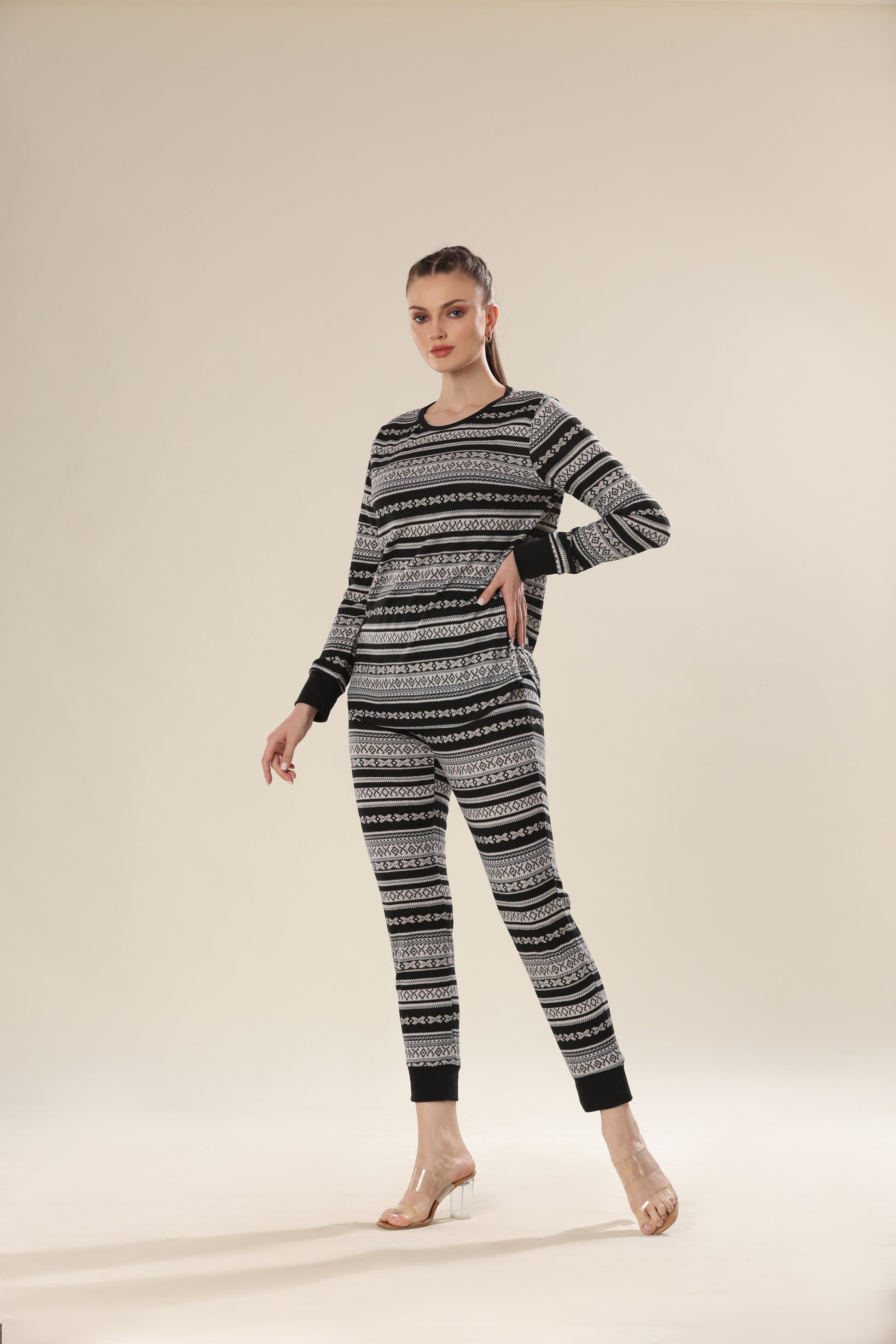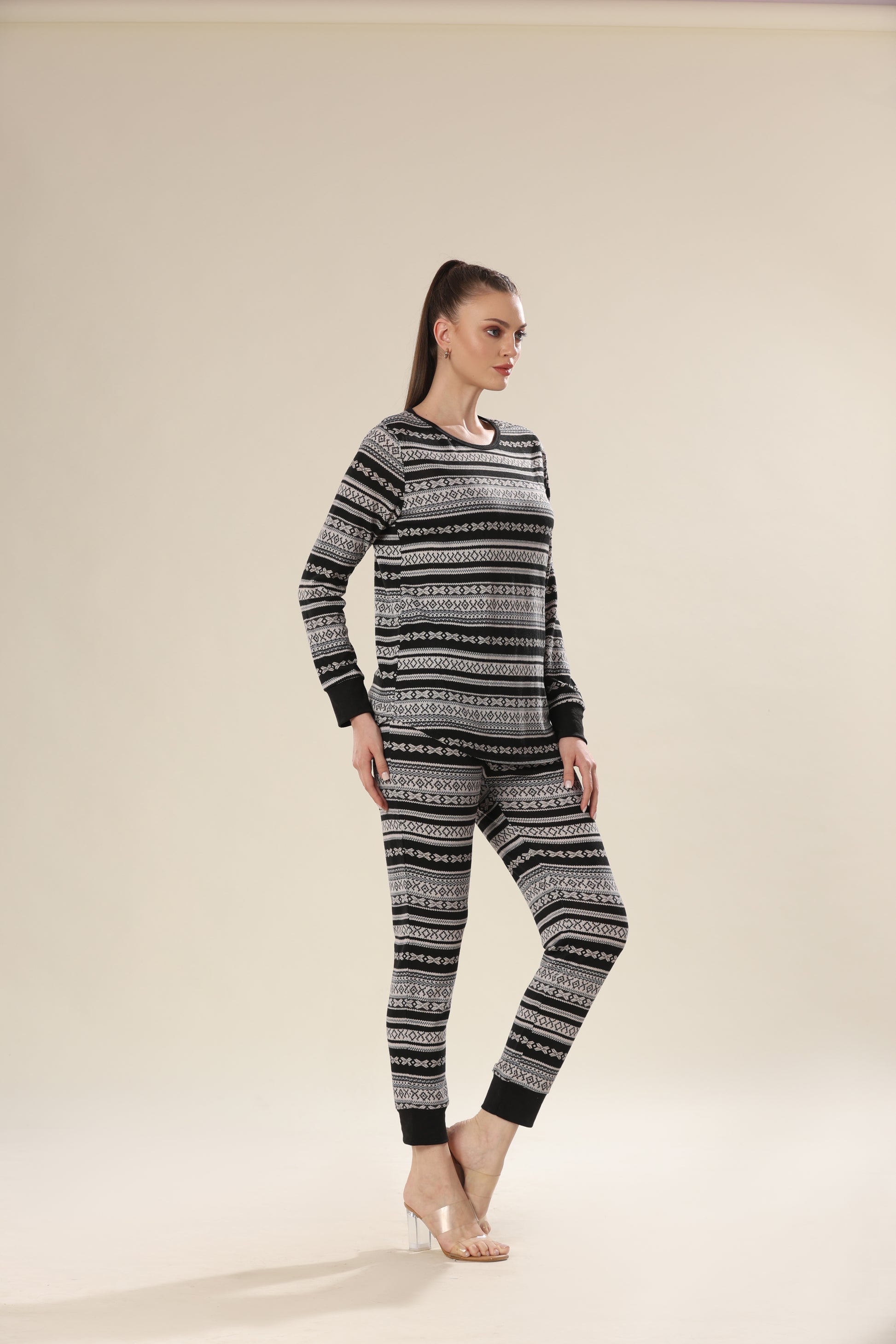 Christmas pattern print long sleeve top & Skinny pants night wear.