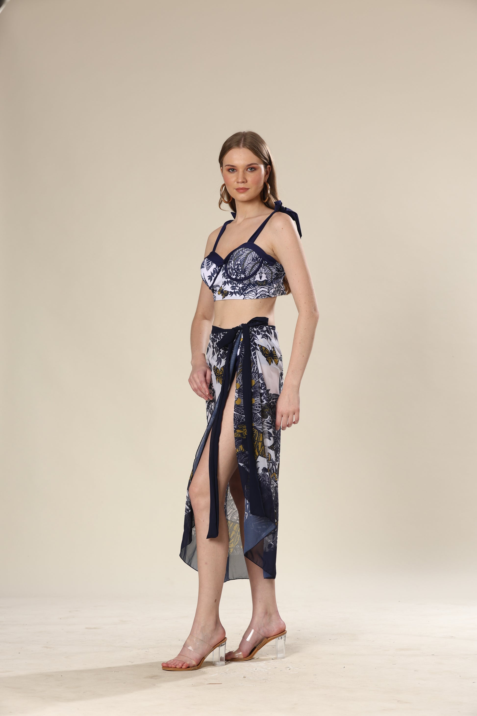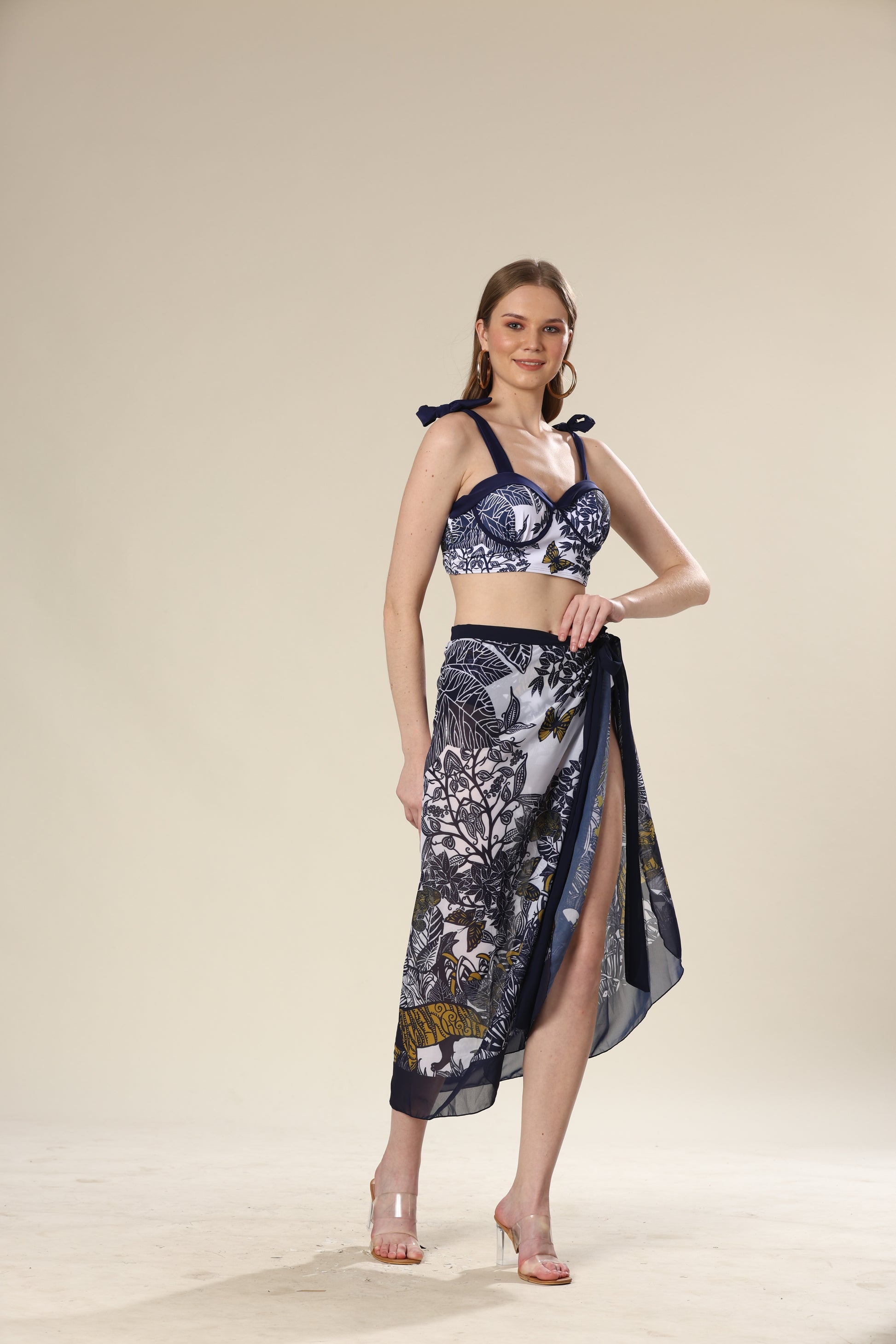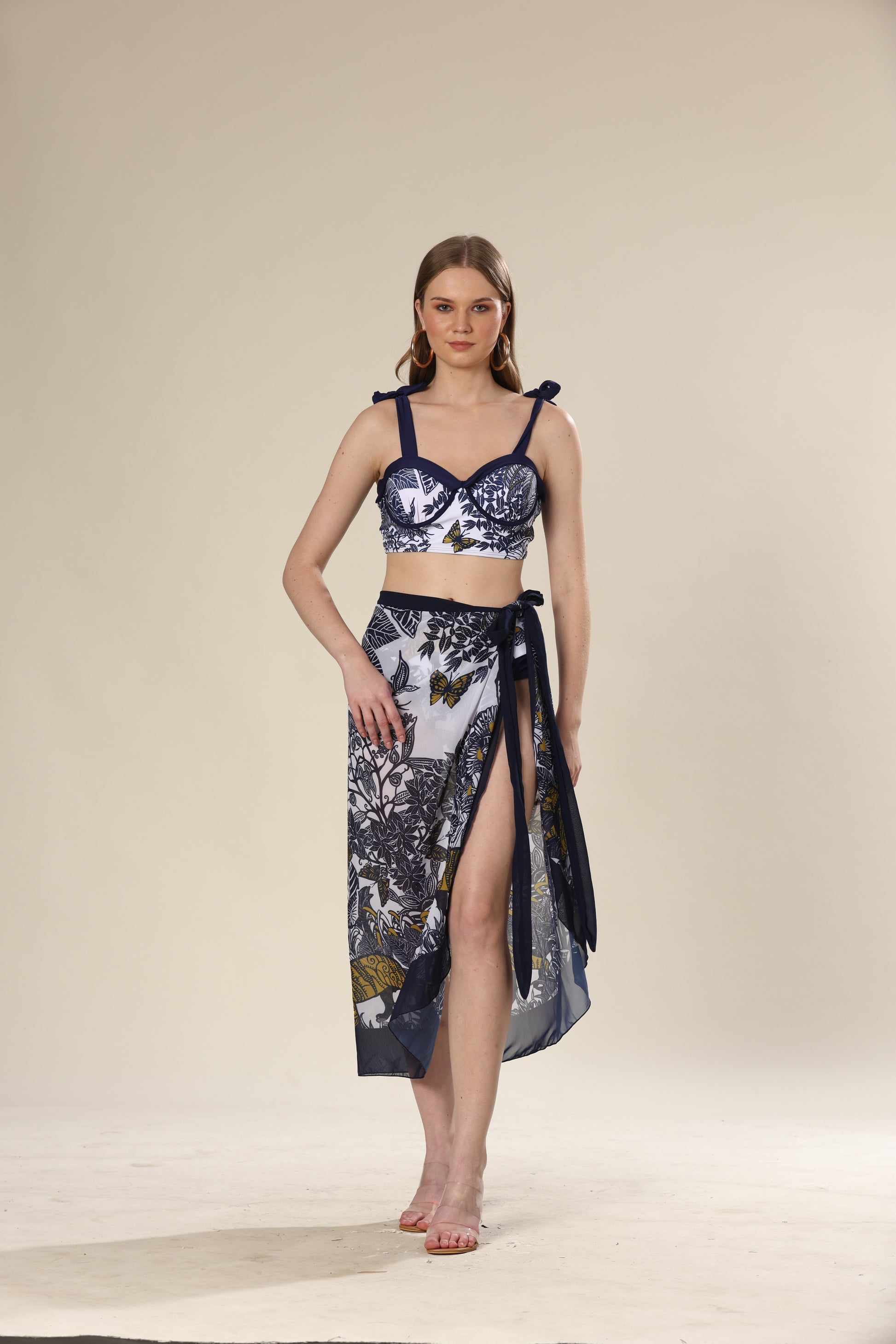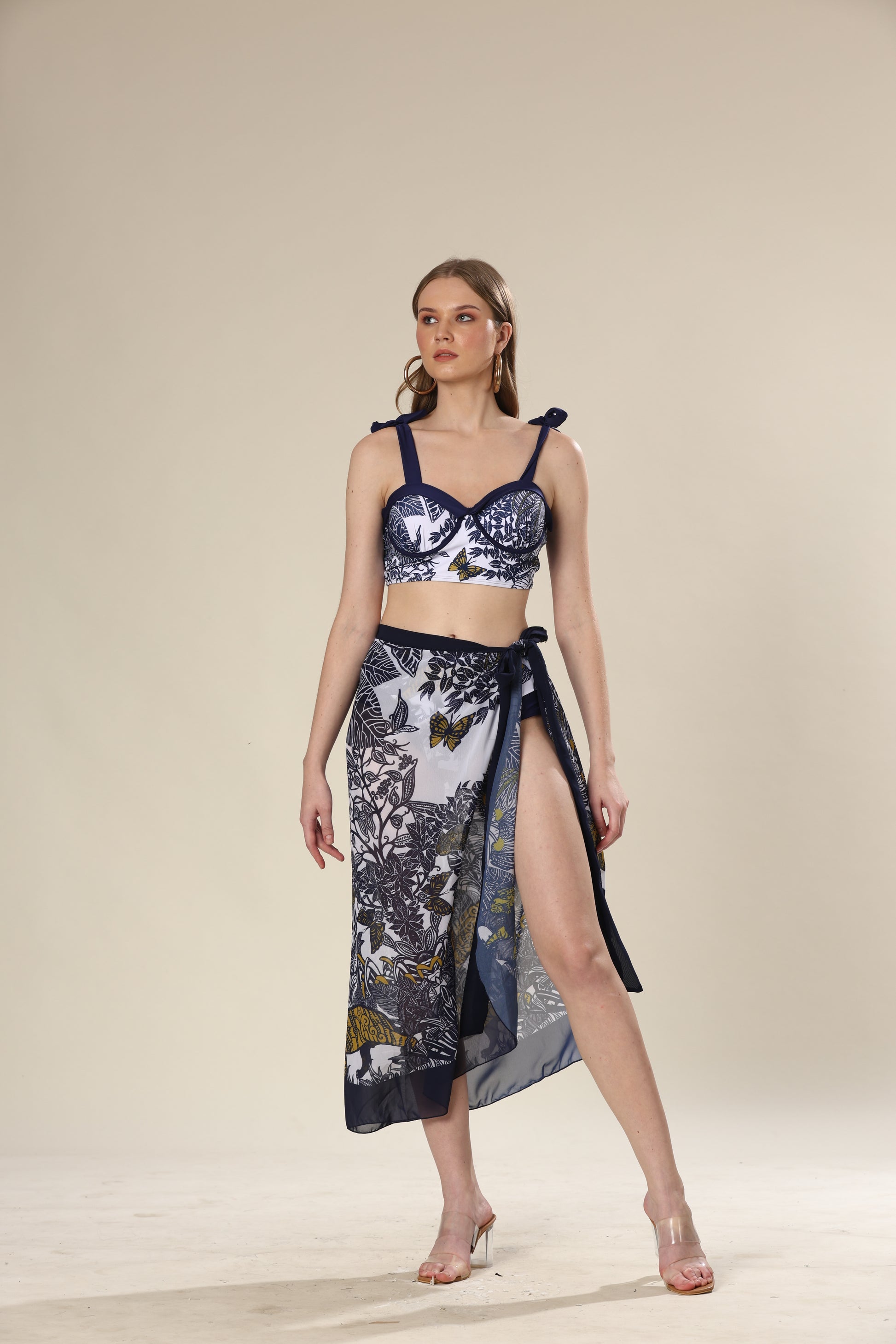The bikini set offers a versatile styling option with vibrant print for beach vibes.