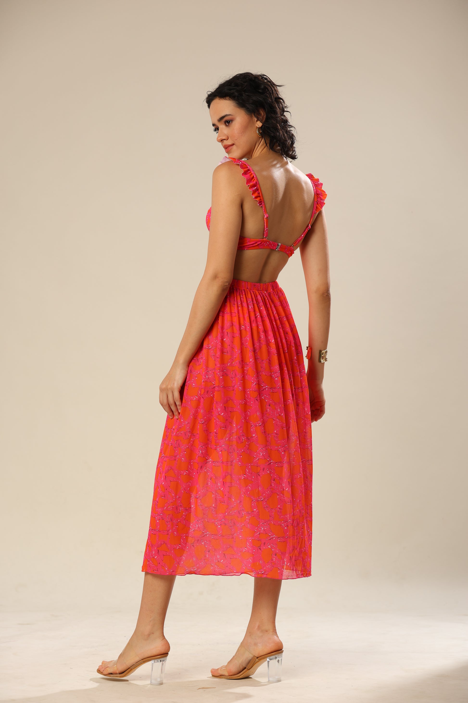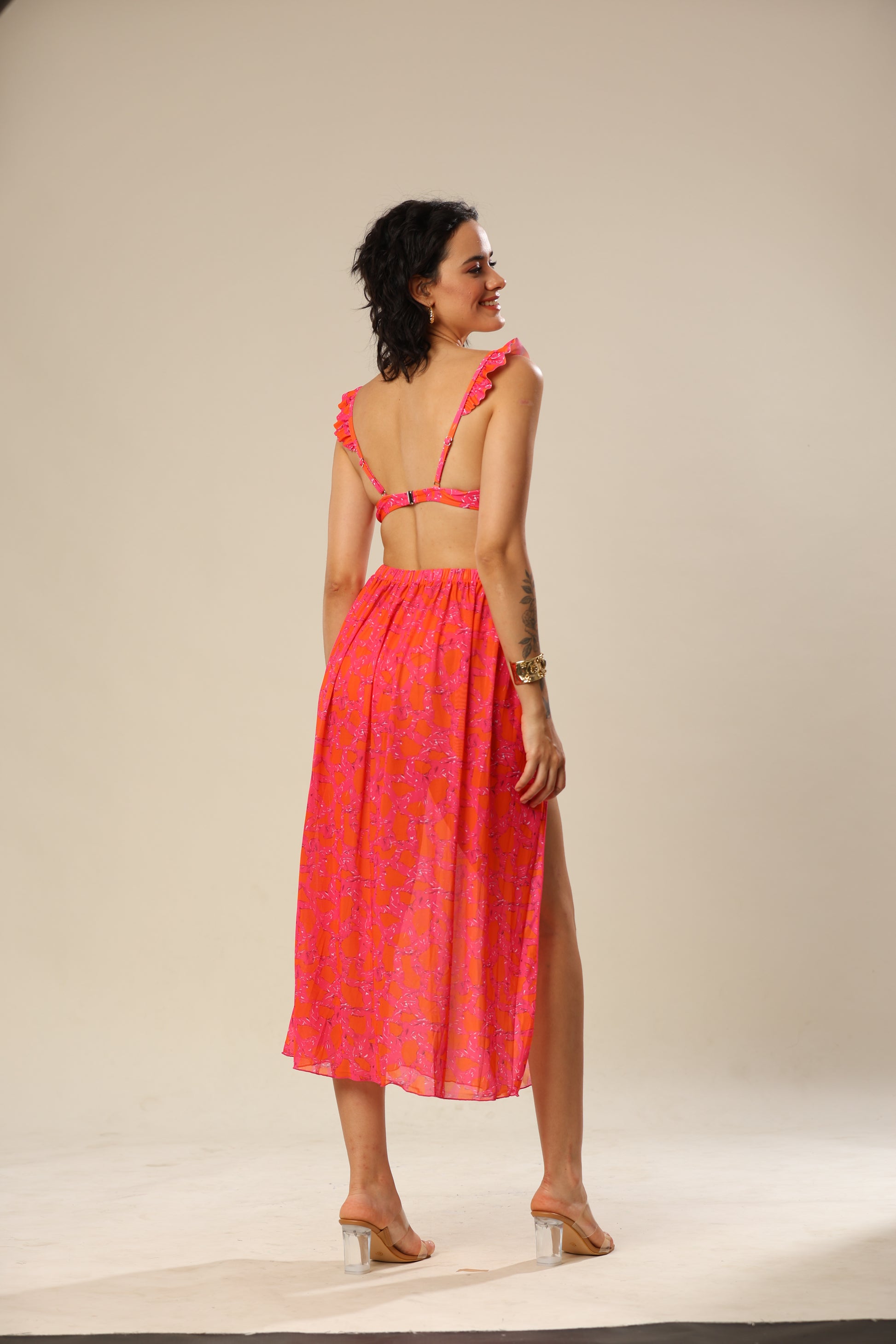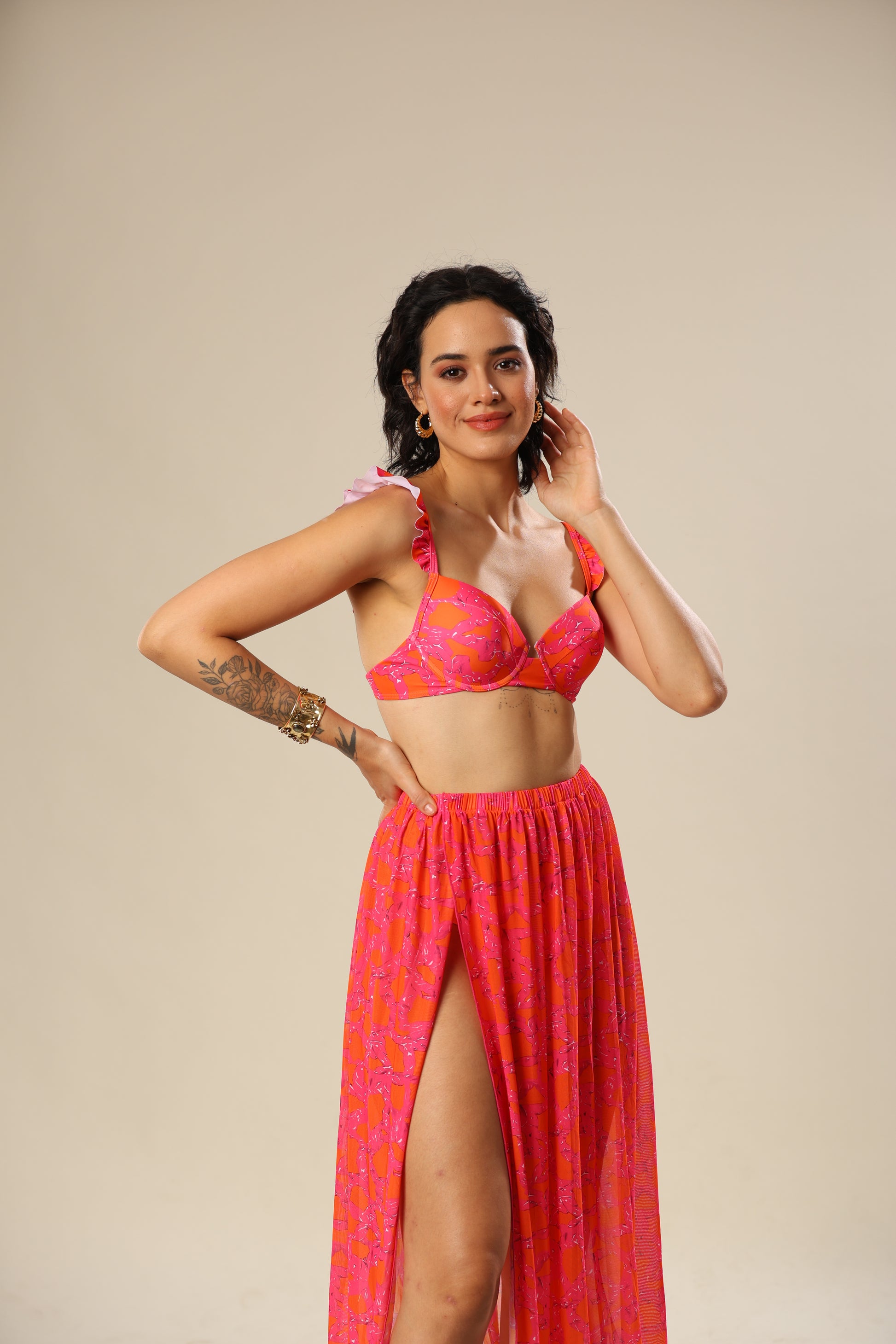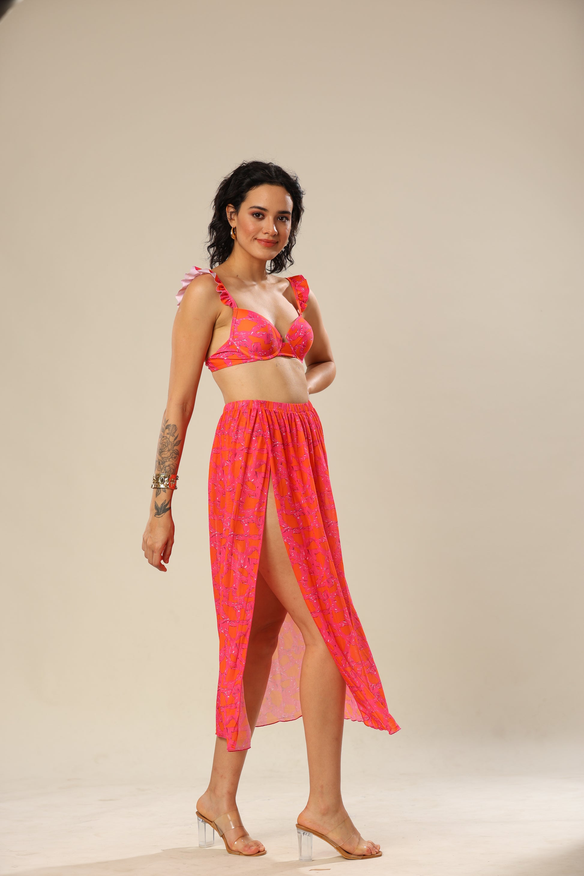 The bikini set offers a versatile styling option with vibrant print for beach vibes.