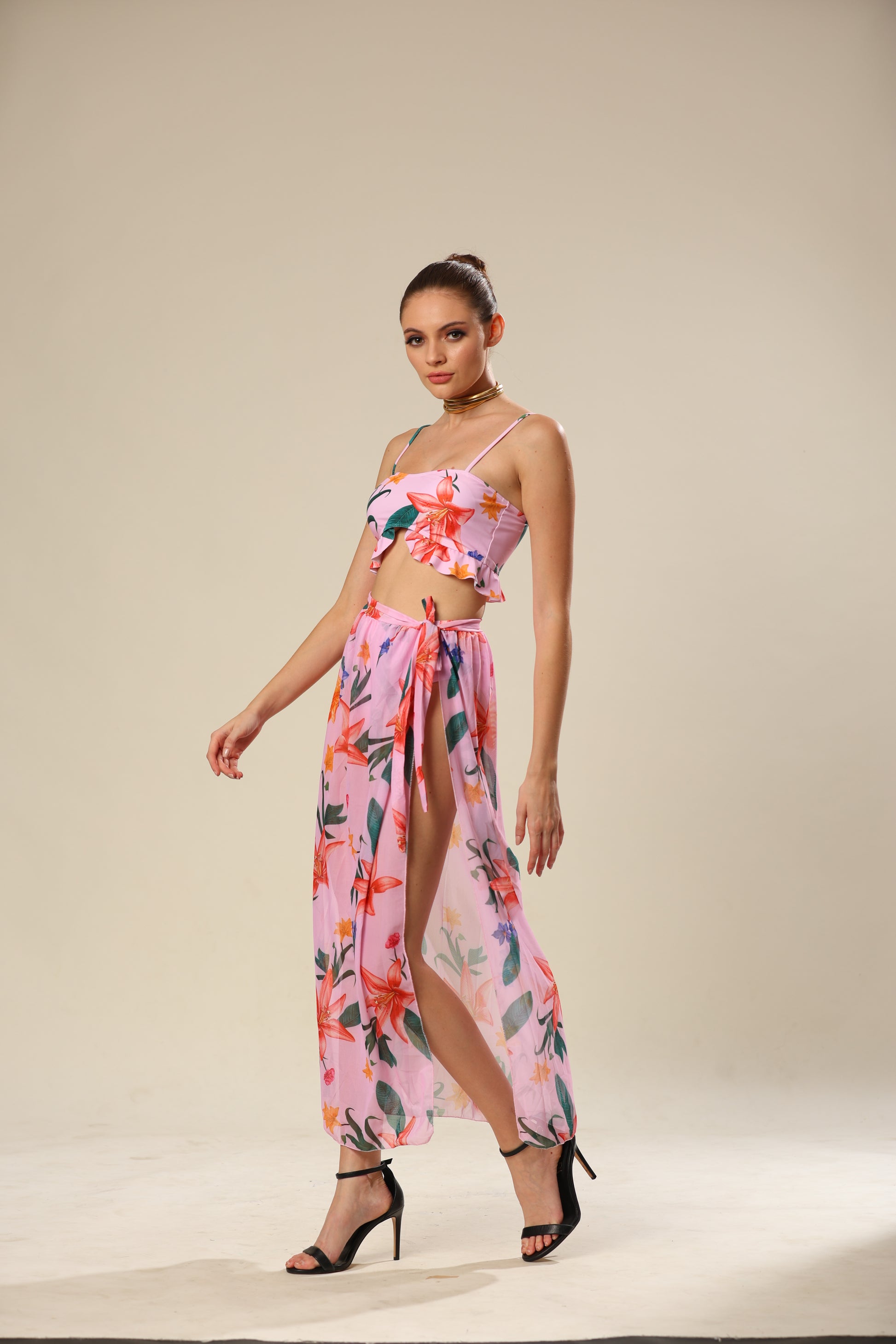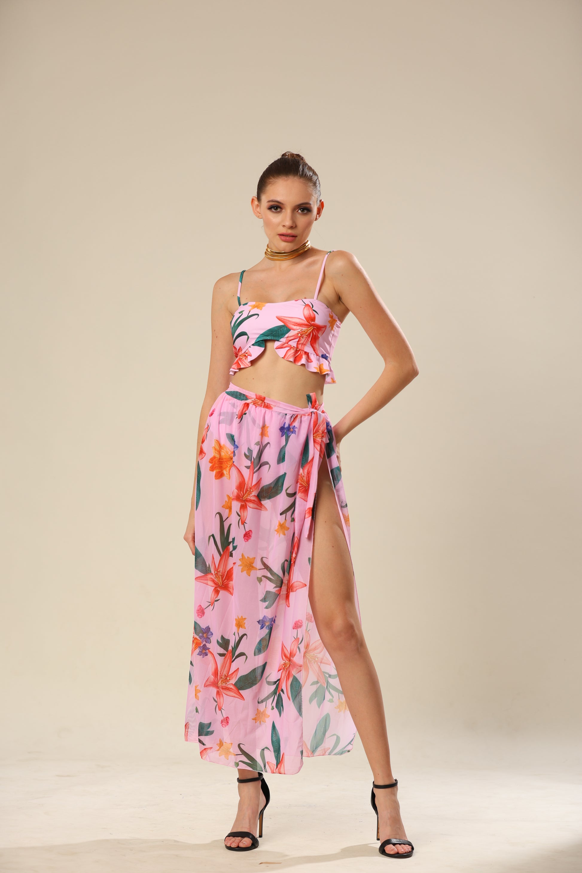 High -Waist bikini trio with skirt slit (3 pieces)bikini set.