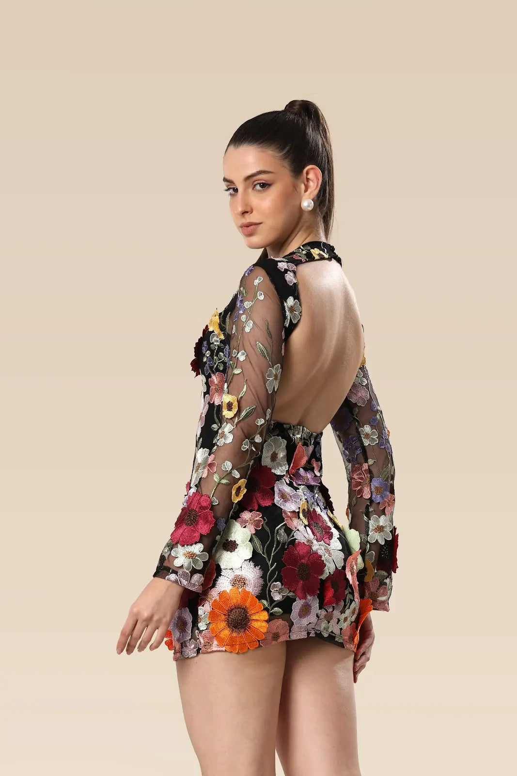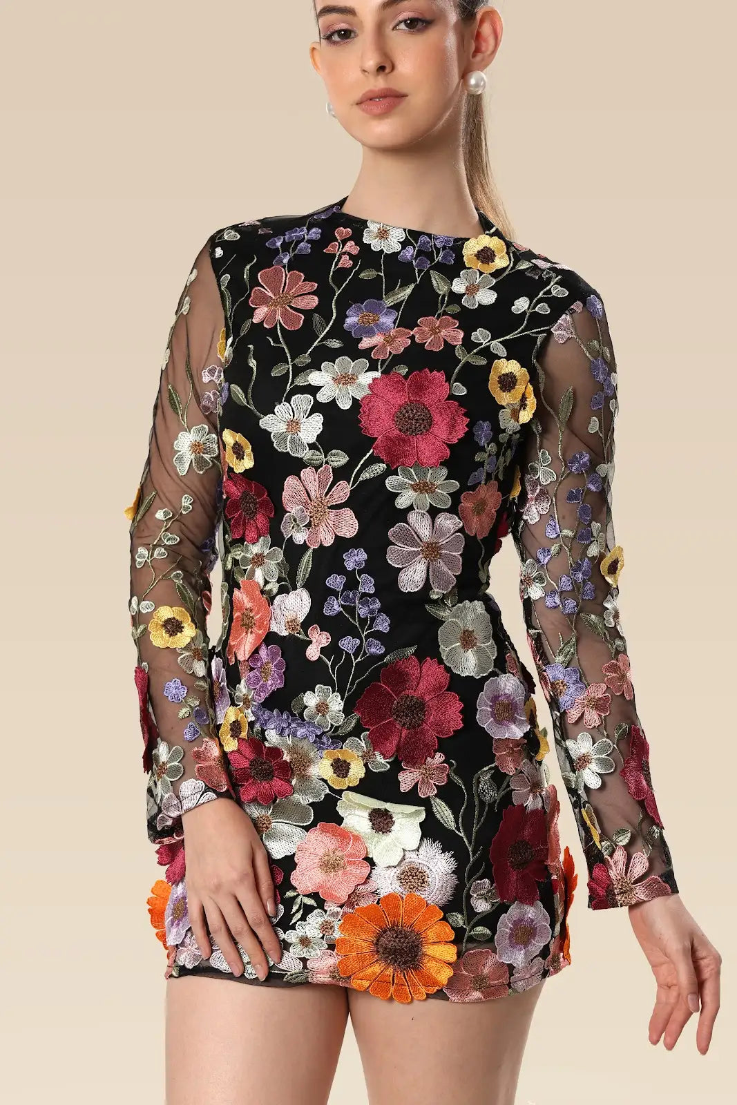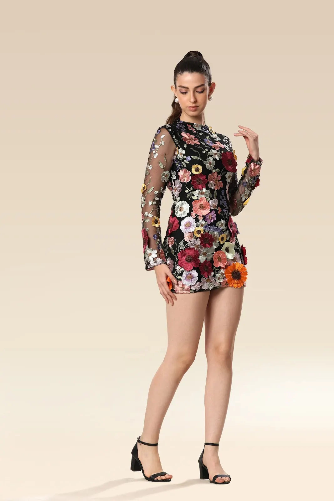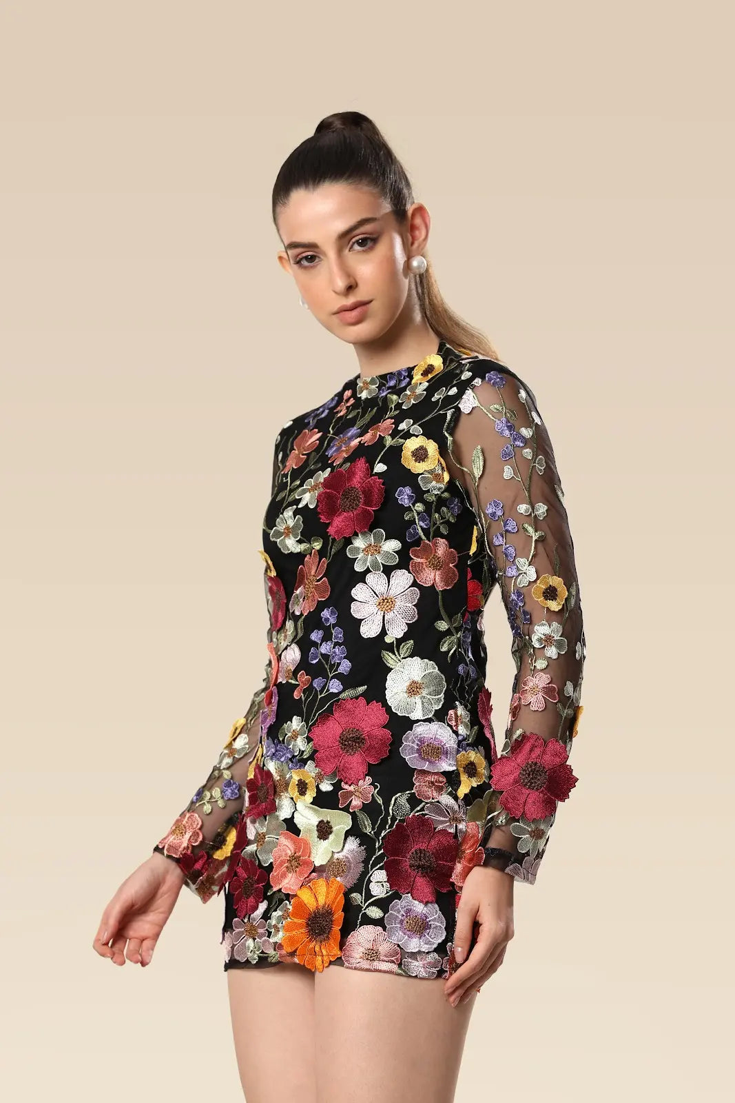 High Neck, Net Long Sleeve, Floral Print, Anti Wrinkle, Breathable.