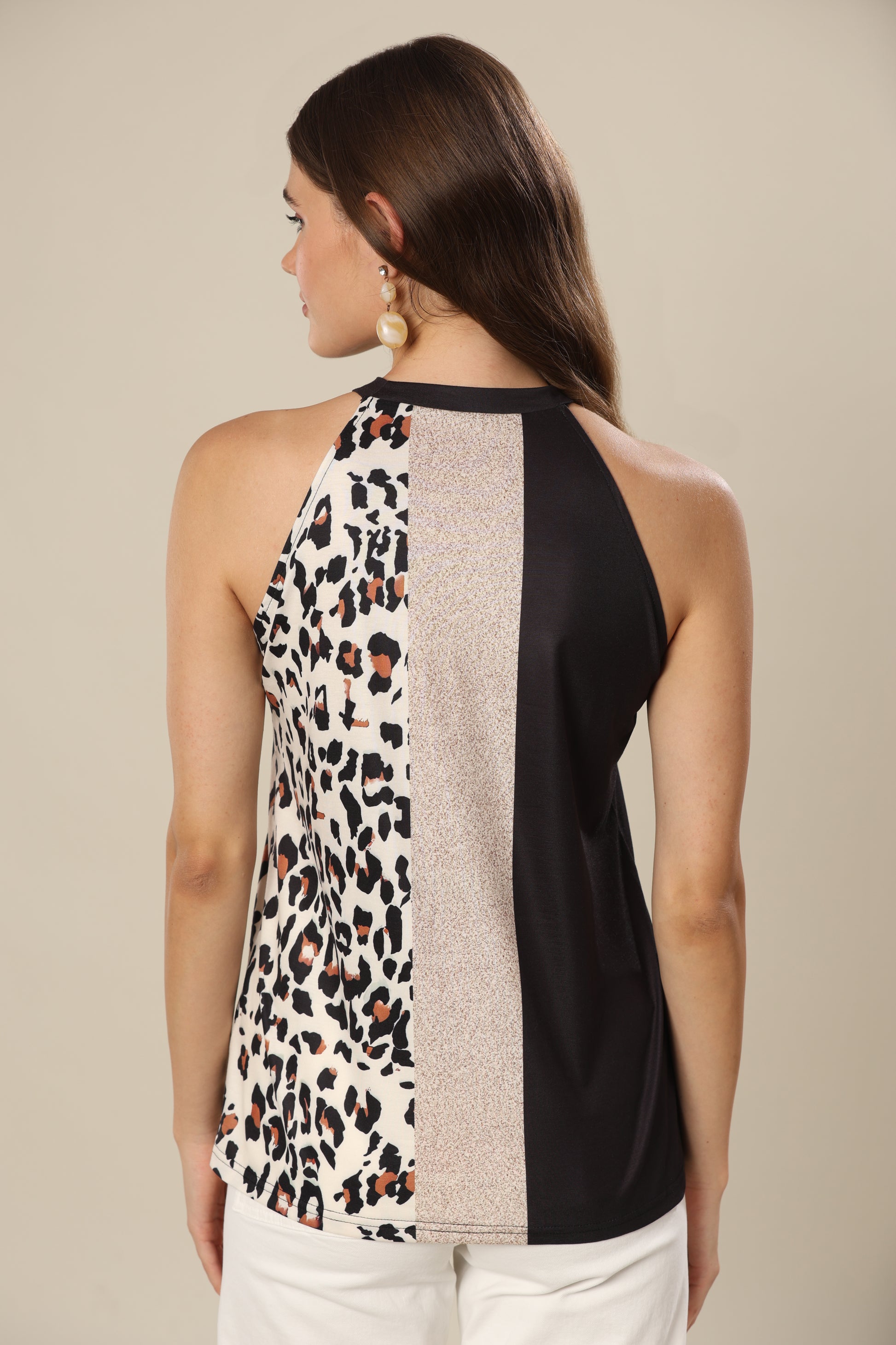 Leopard color block casual tank top .