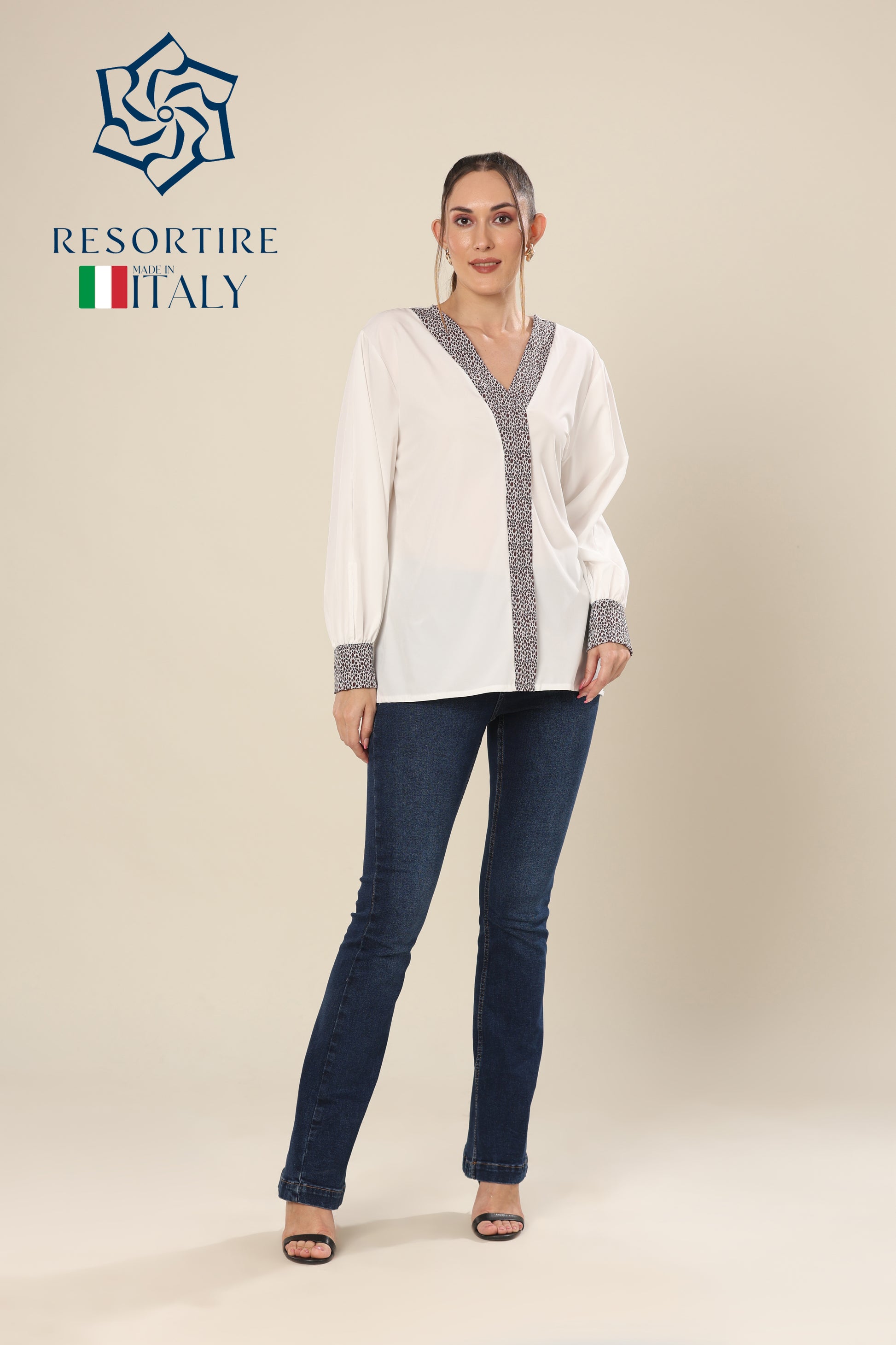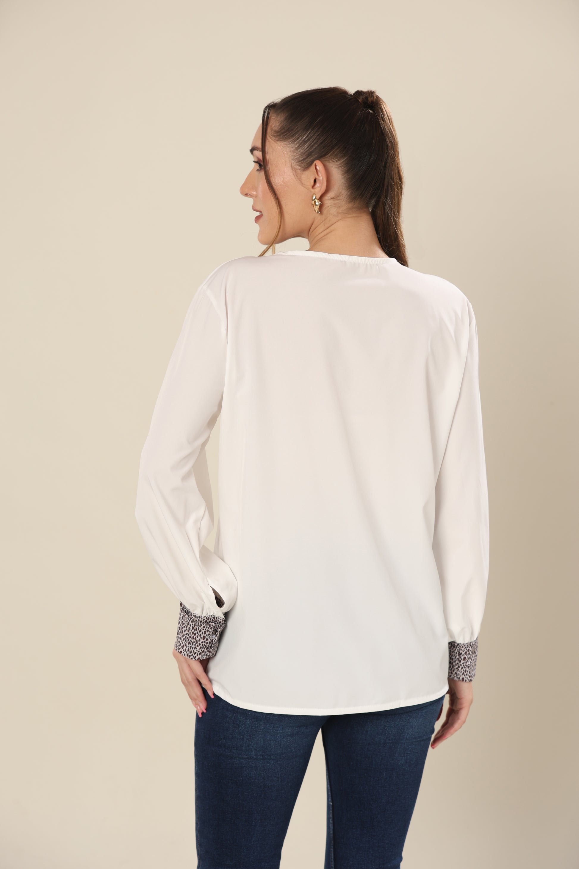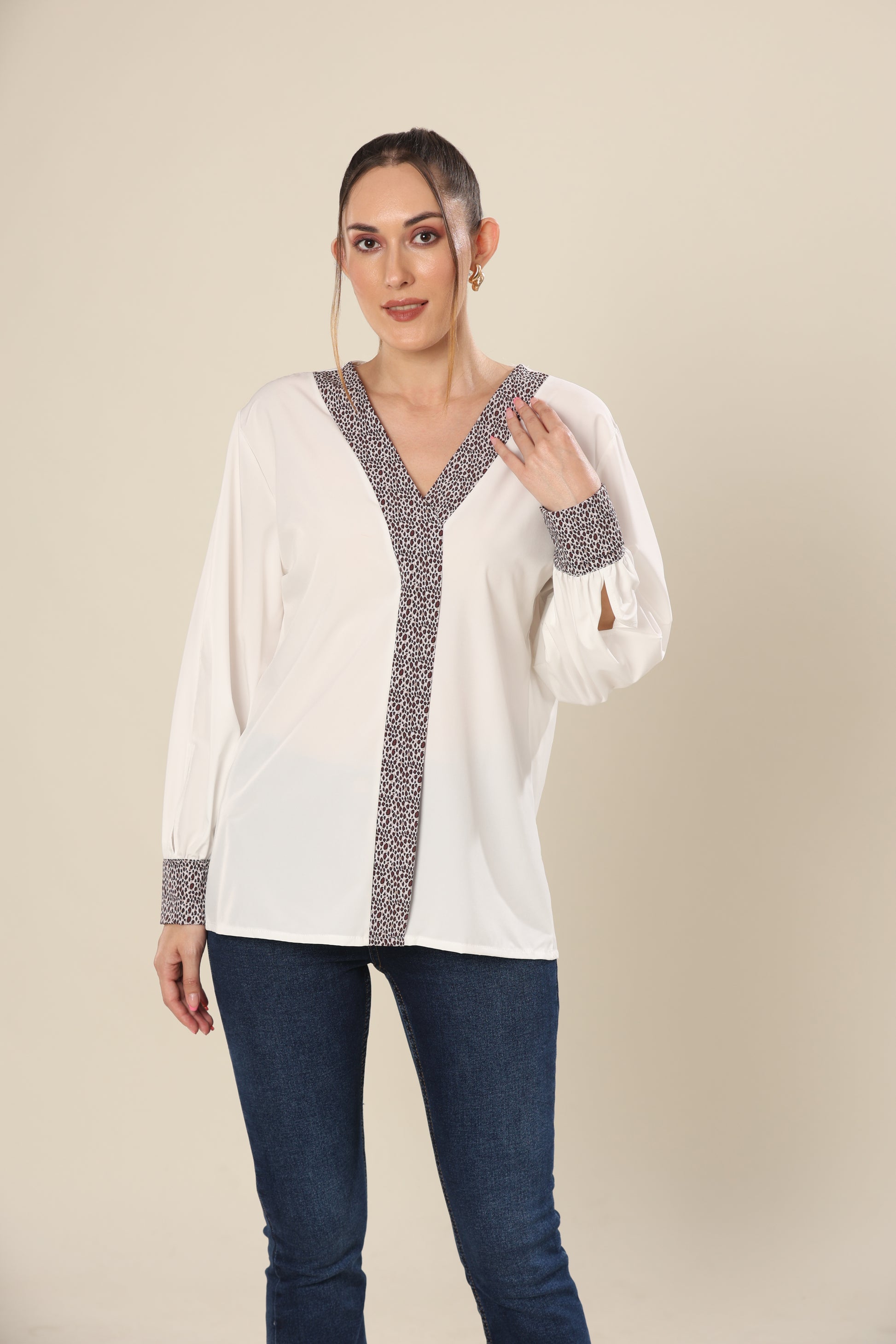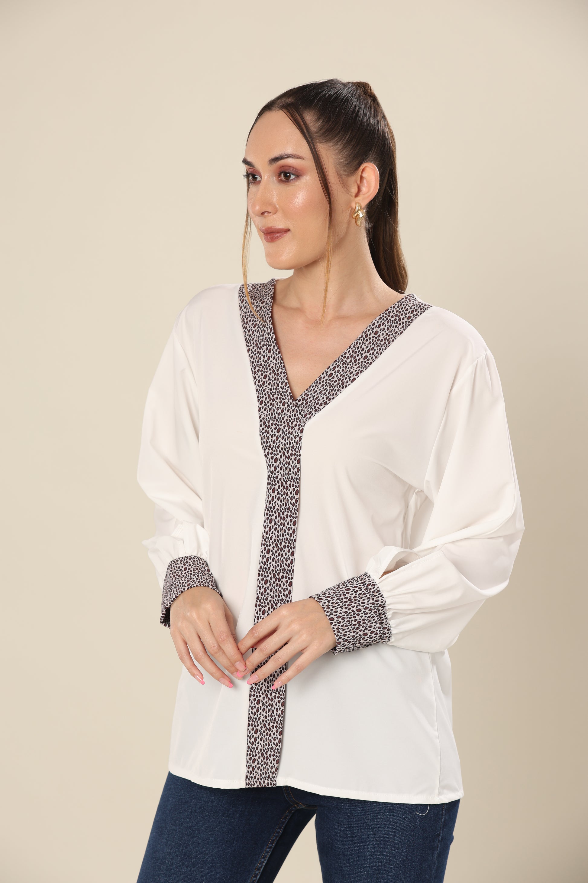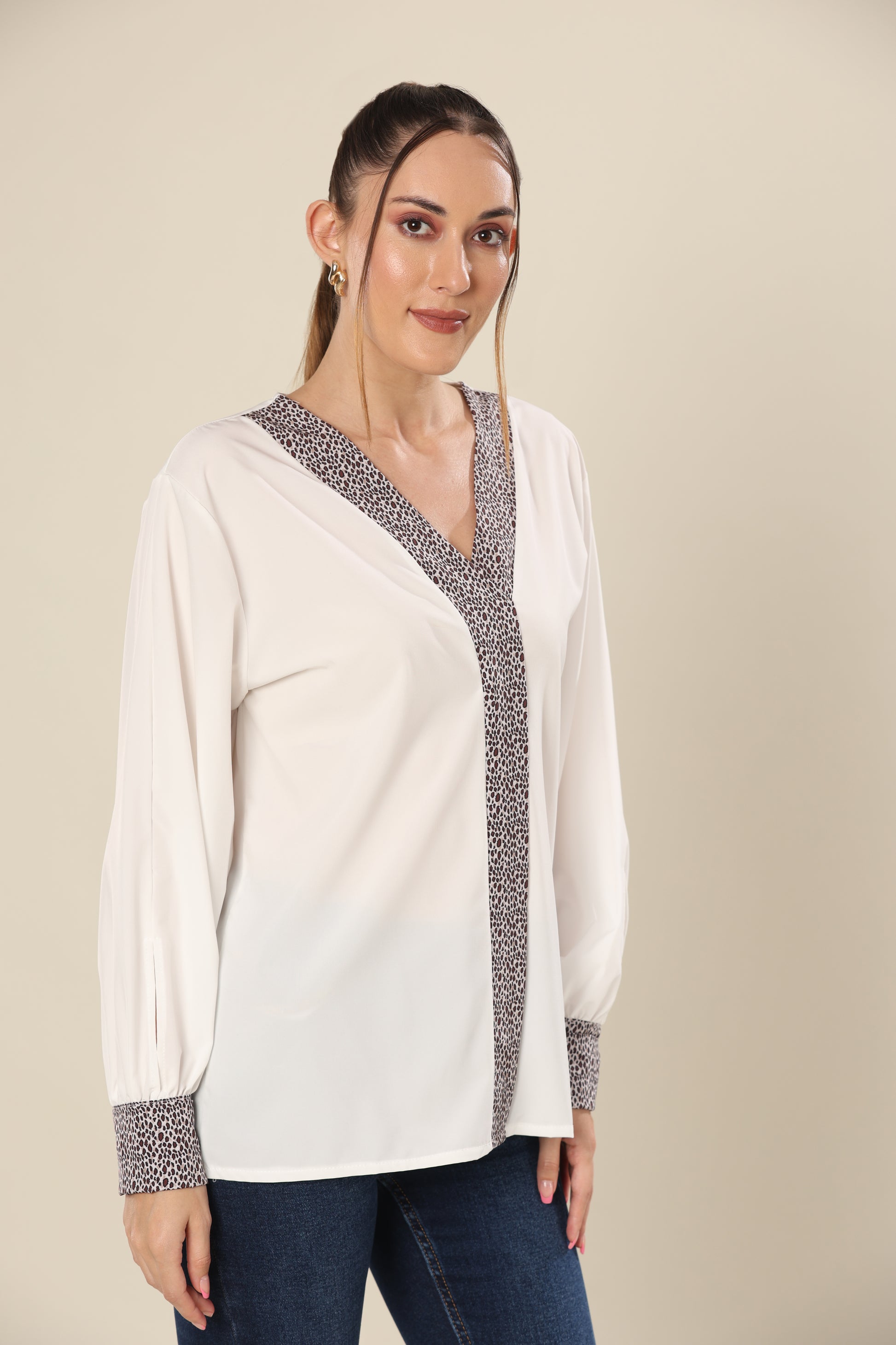 The Top is made of high-quality imitation satin, which offers perfect comfort. Leopard print Top has a 'V' neck and long sleeves.