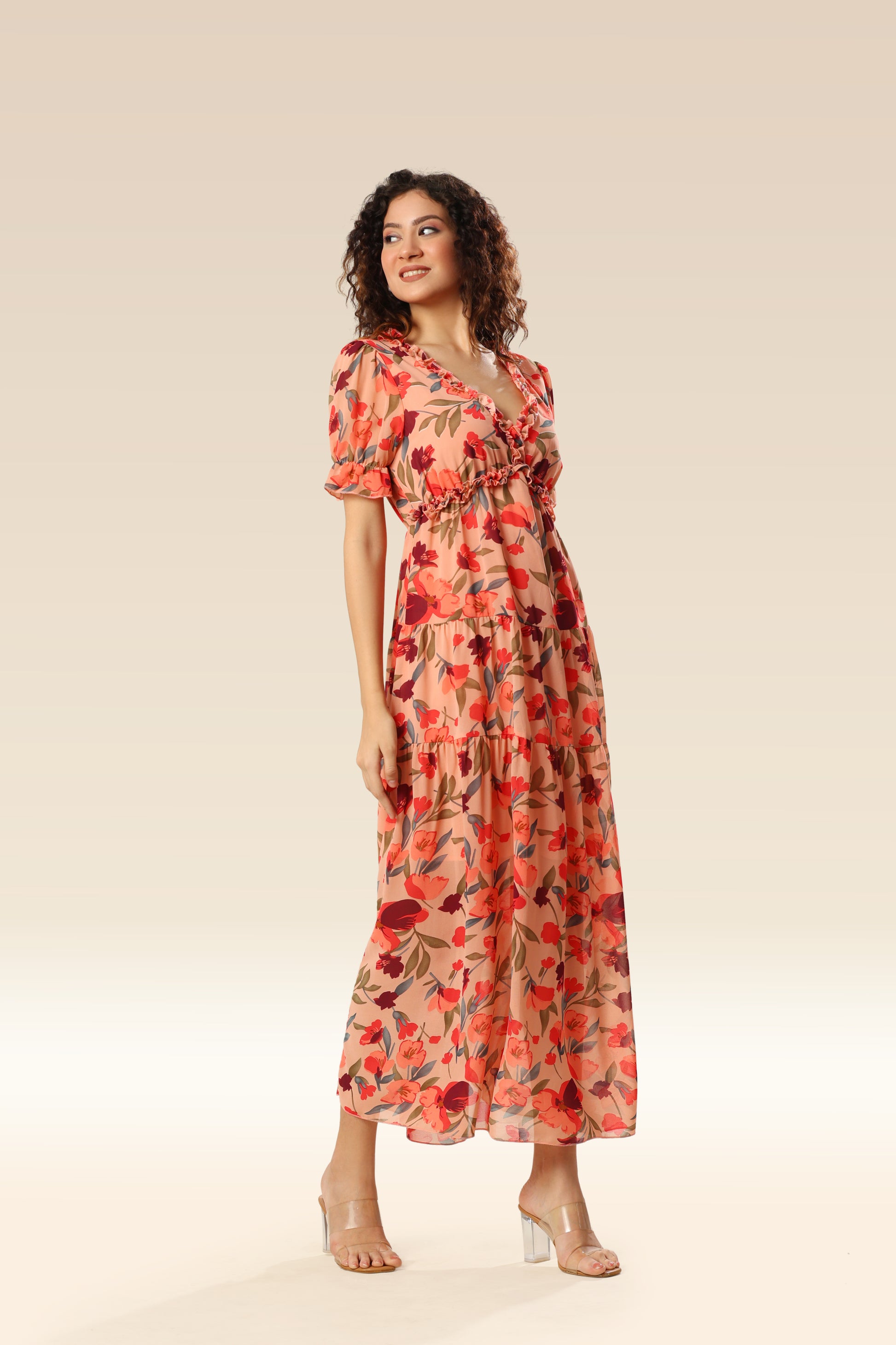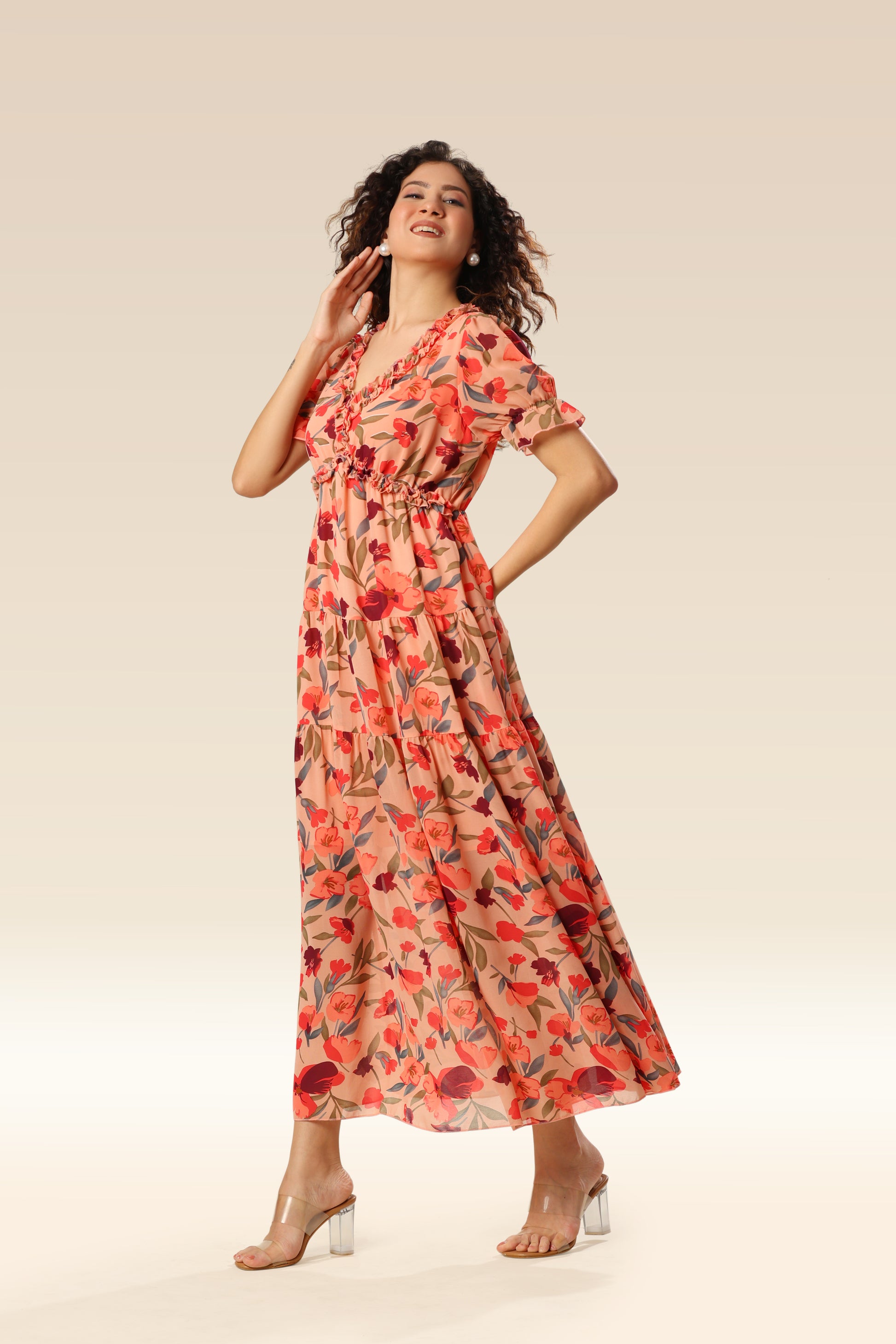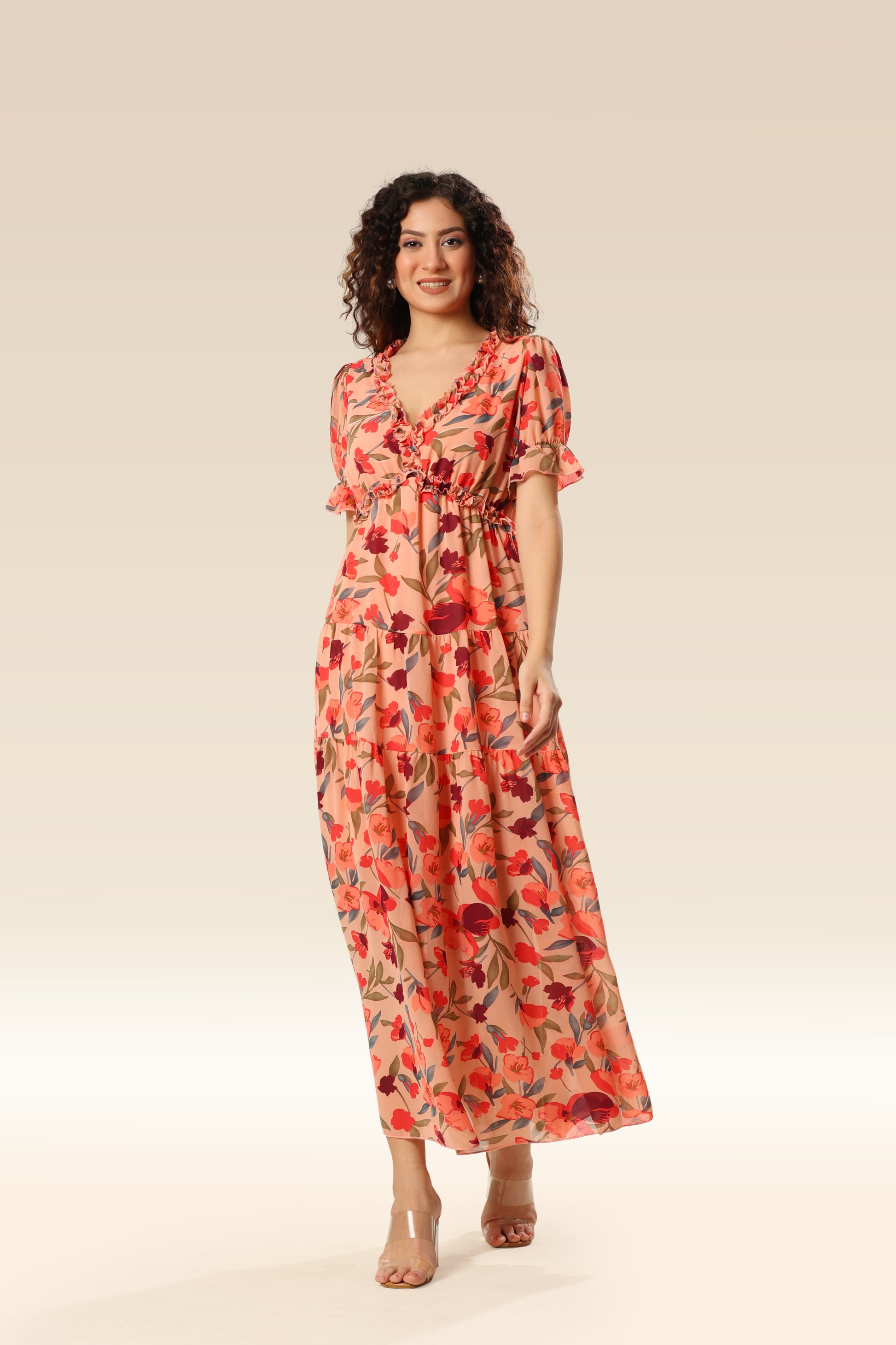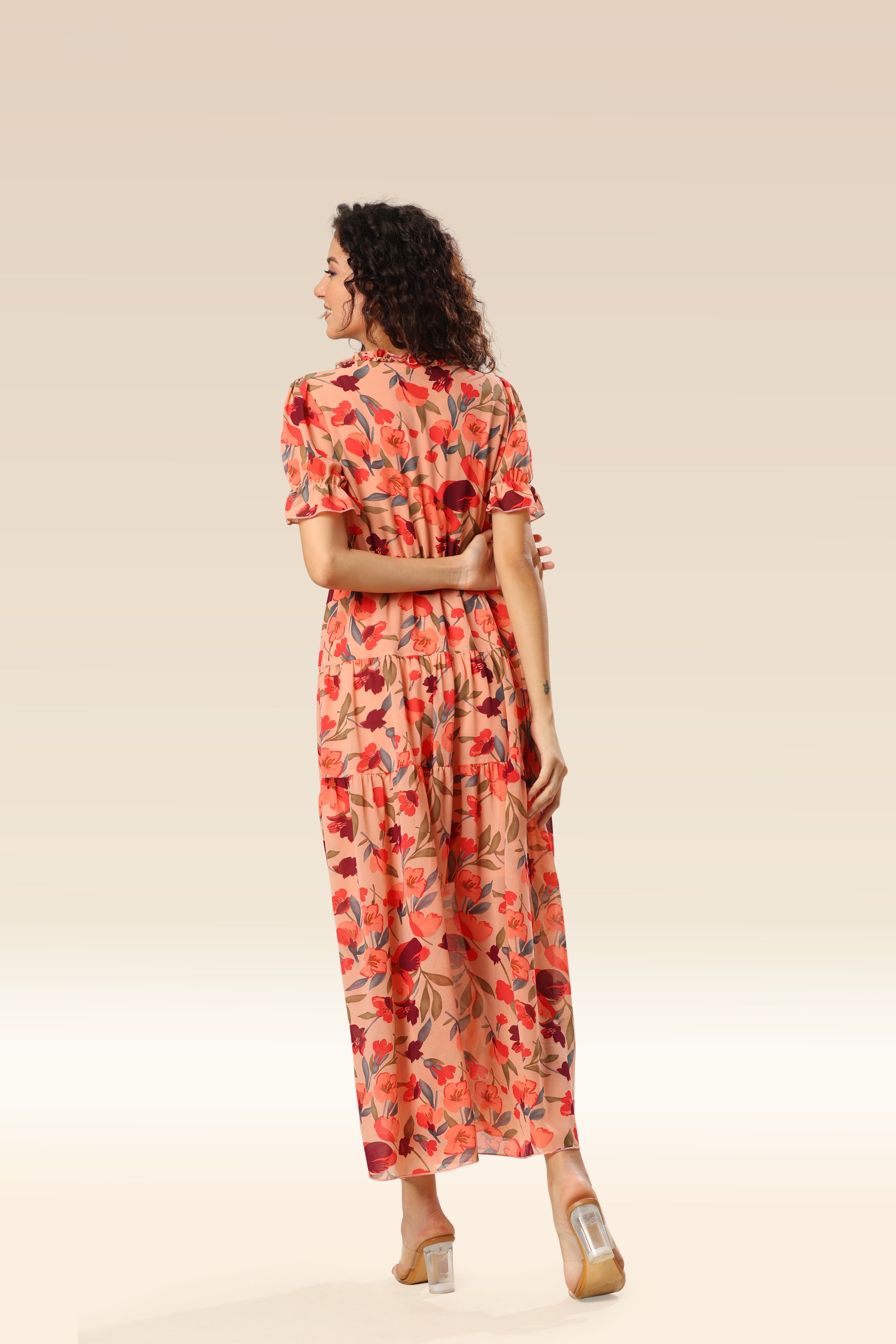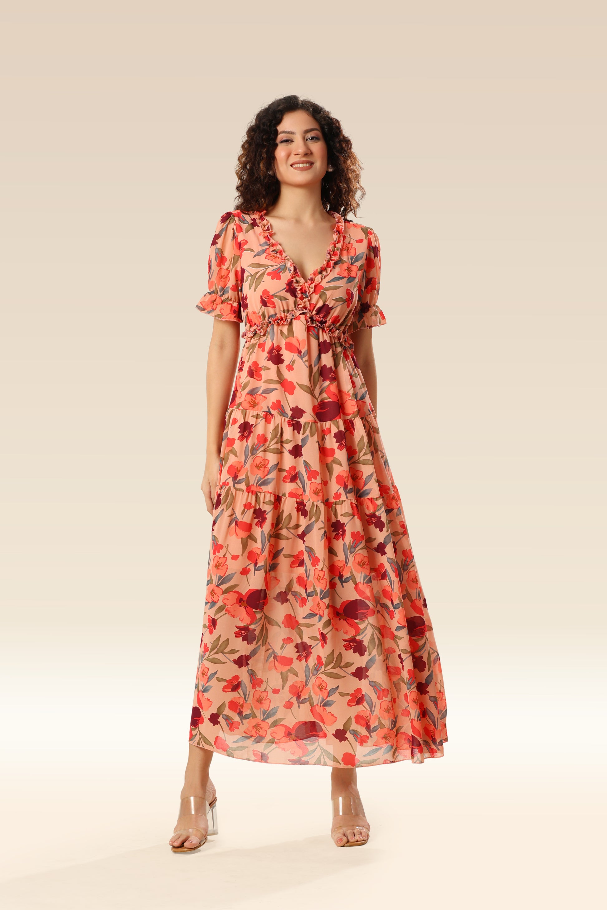 Wild lotus ruffle tiered maxi dress .