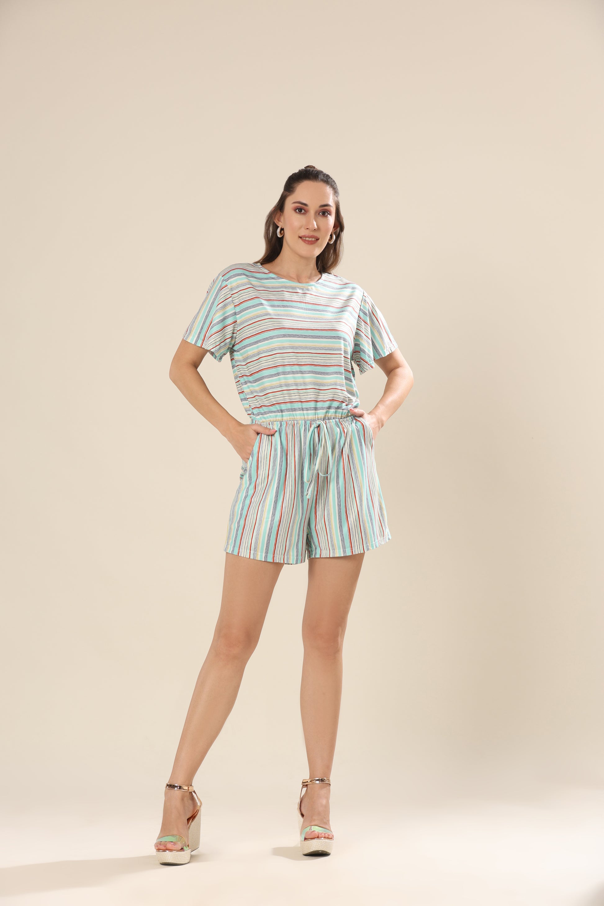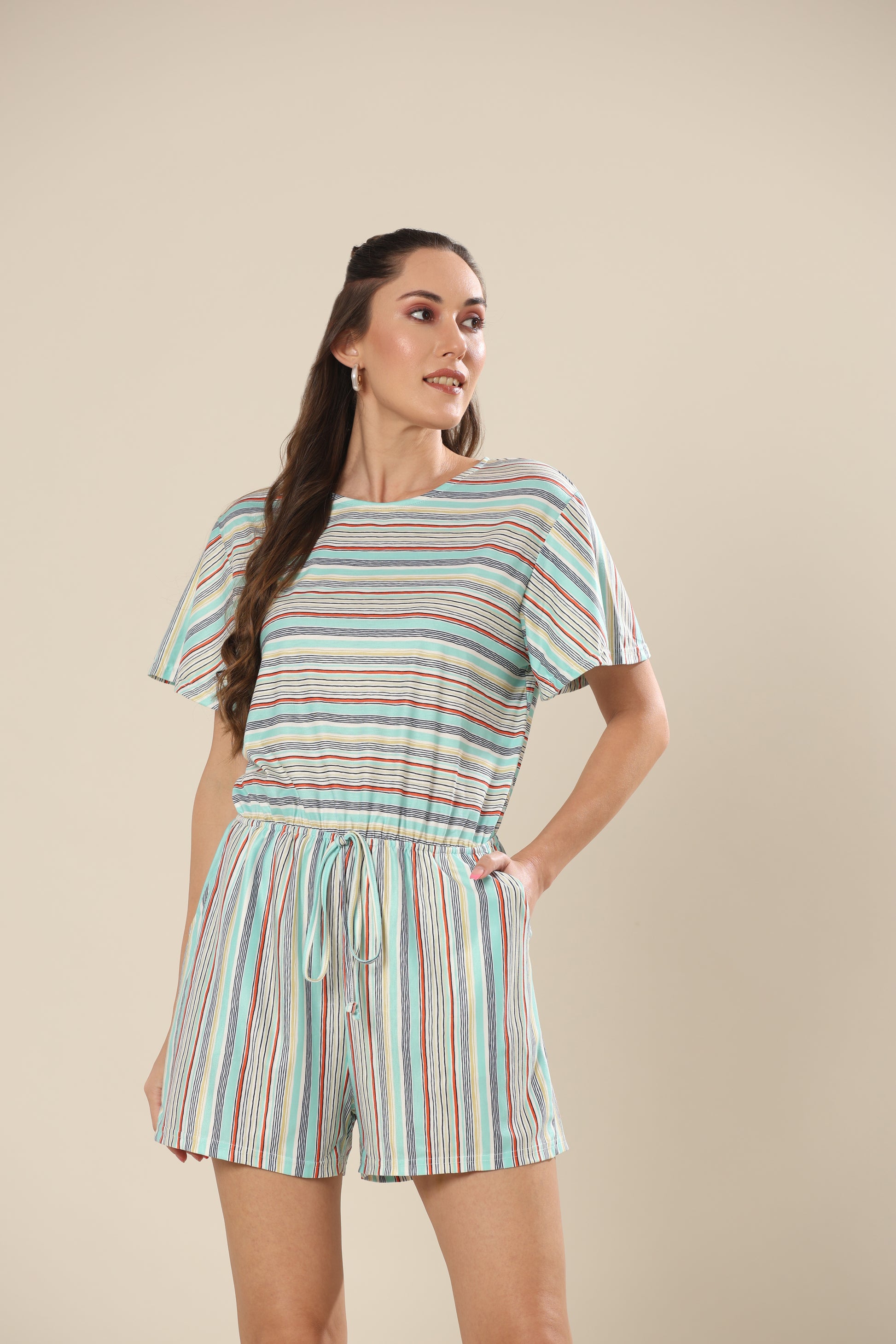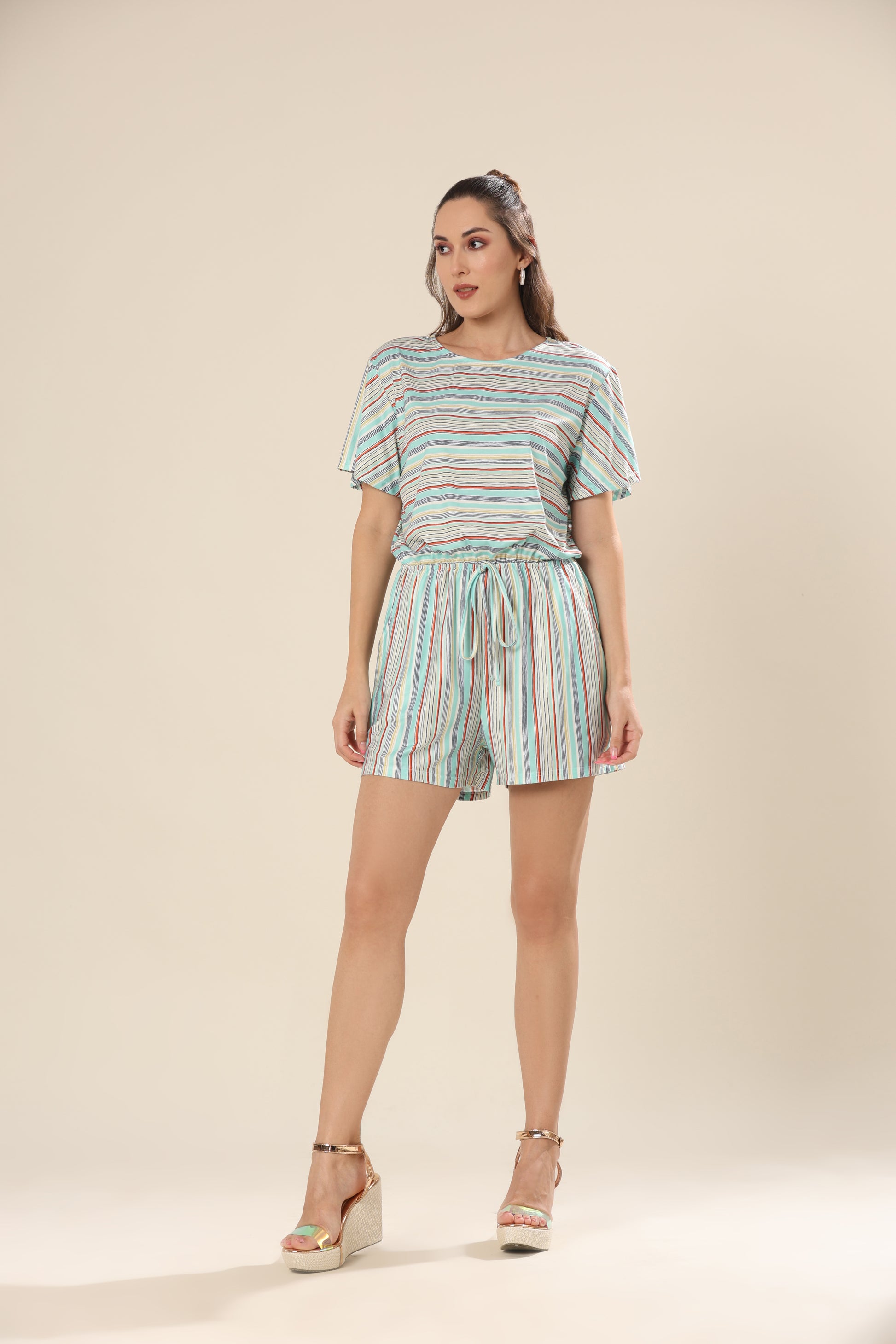 Striped short sleeve romper .