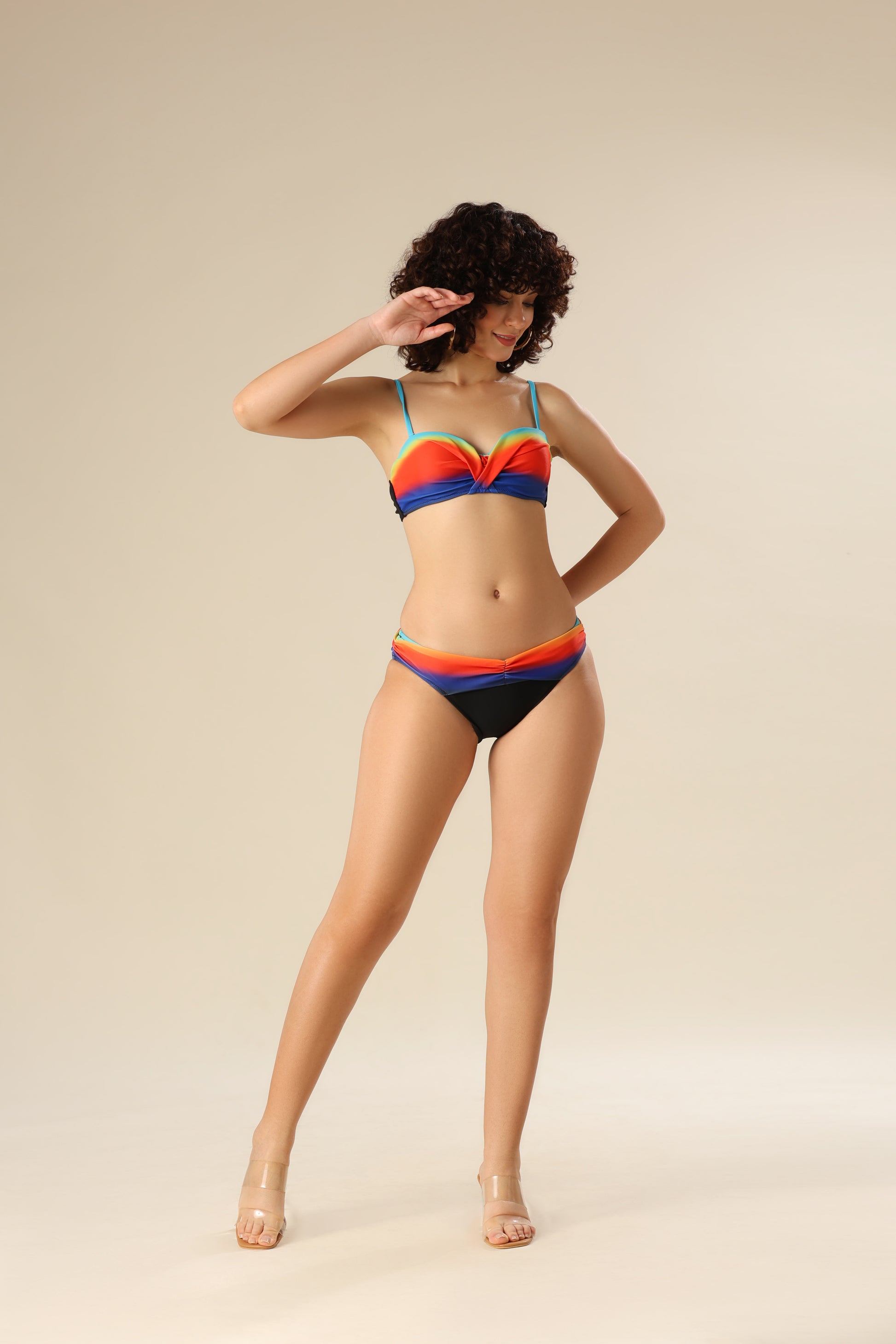 The bikini set offers a versatile styling option with vibrant print for beach vibes.